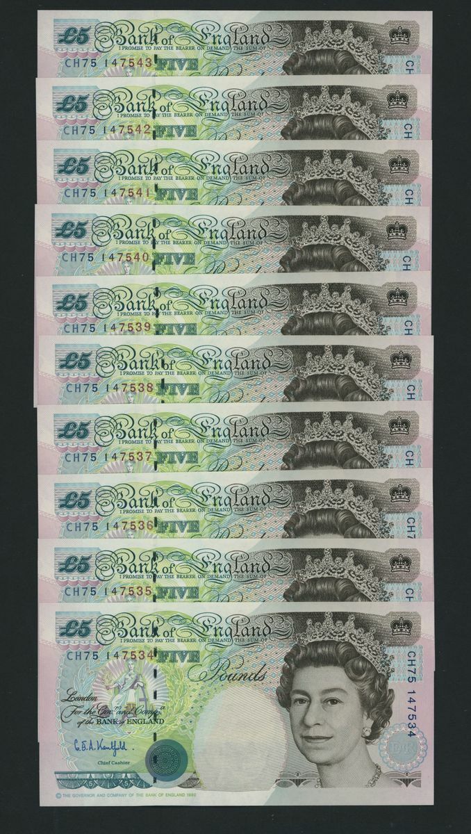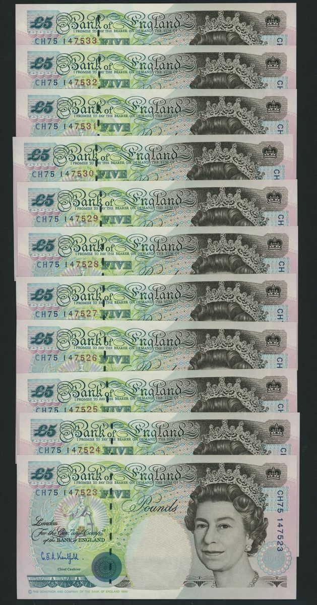 Bank of England, [32 notes] £5, London, ND (1993), G. E. A. Kentfield, consecutive run prefix CH75