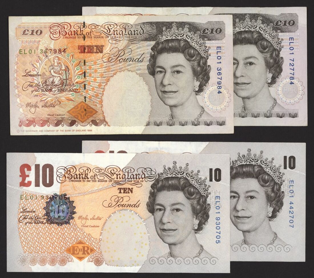 Bank of England, [4 notes] £10, London, ND (1993-2000), G. E. A. Kentfield and M. Lowther,