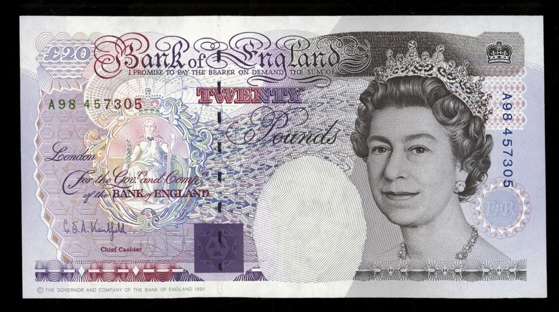 Bank of England, £20, London, ND (1991), no. A98 457305, G. E. A. Kentfield, last prefix