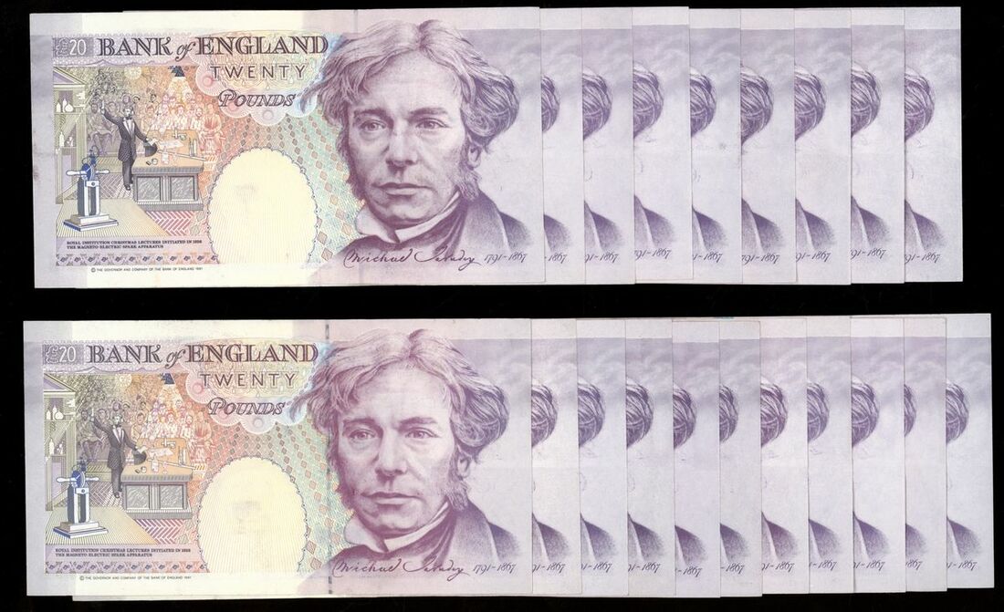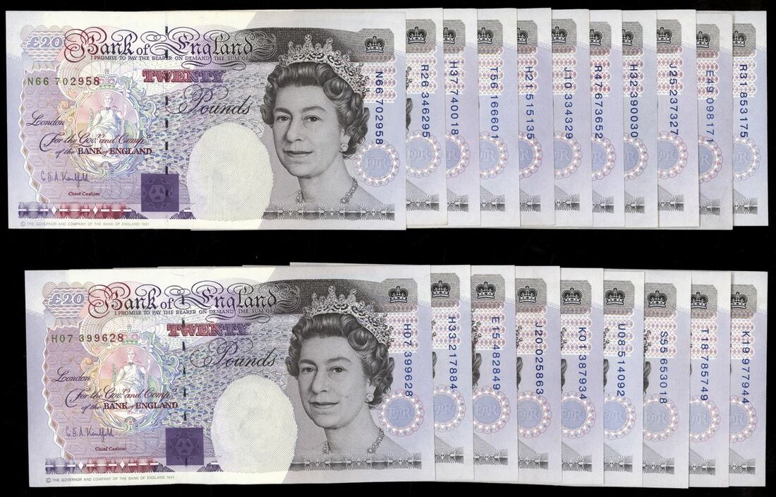 Bank of England, [20 notes] £20, London, ND (1991), G. E. A. Kentfield, (Pick 384b, EPM B371), mostly extremely fine (20 notes)