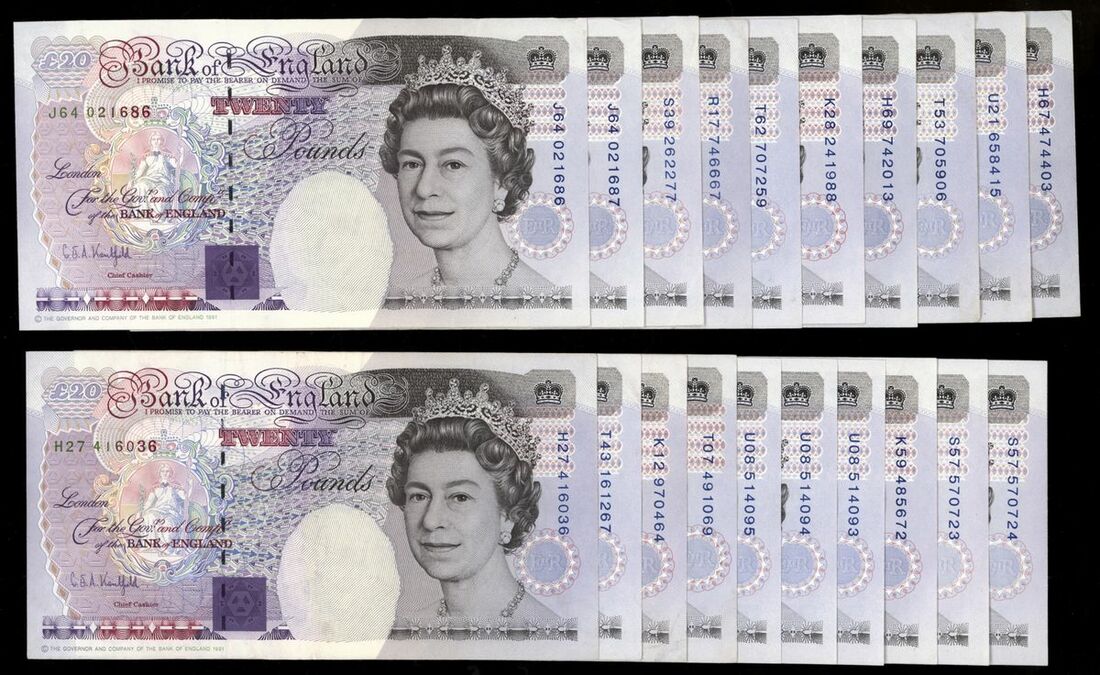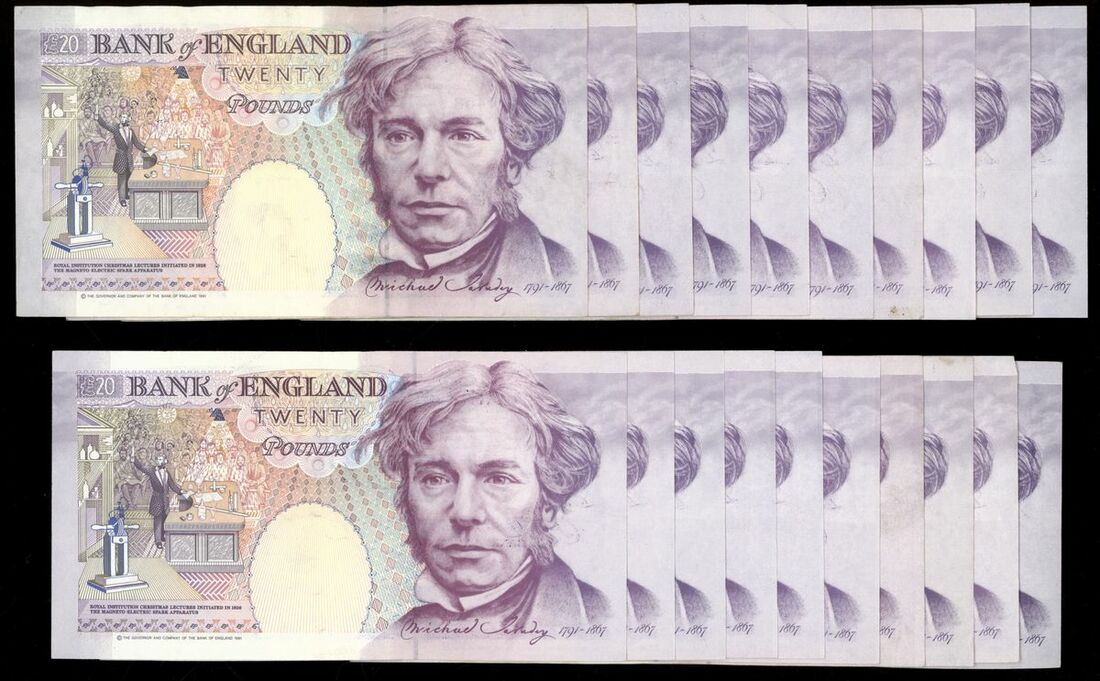 Bank of England, [20 notes] £20, London, ND (1991), G. E. A. Kentfield, (Pick 384b, EPM B371), mostly extremely fine (20 notes)