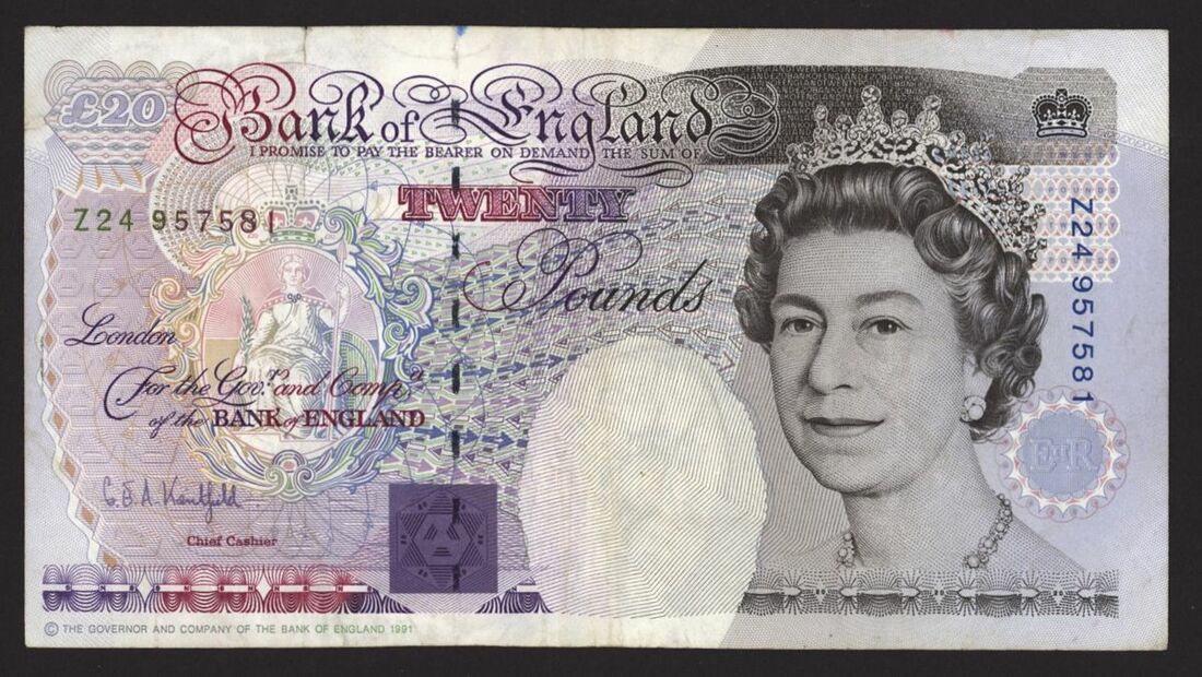 Bank of England, £20, London, ND (1991), no. Z24 957581, G. E. A. Kentfield, experimental issue
