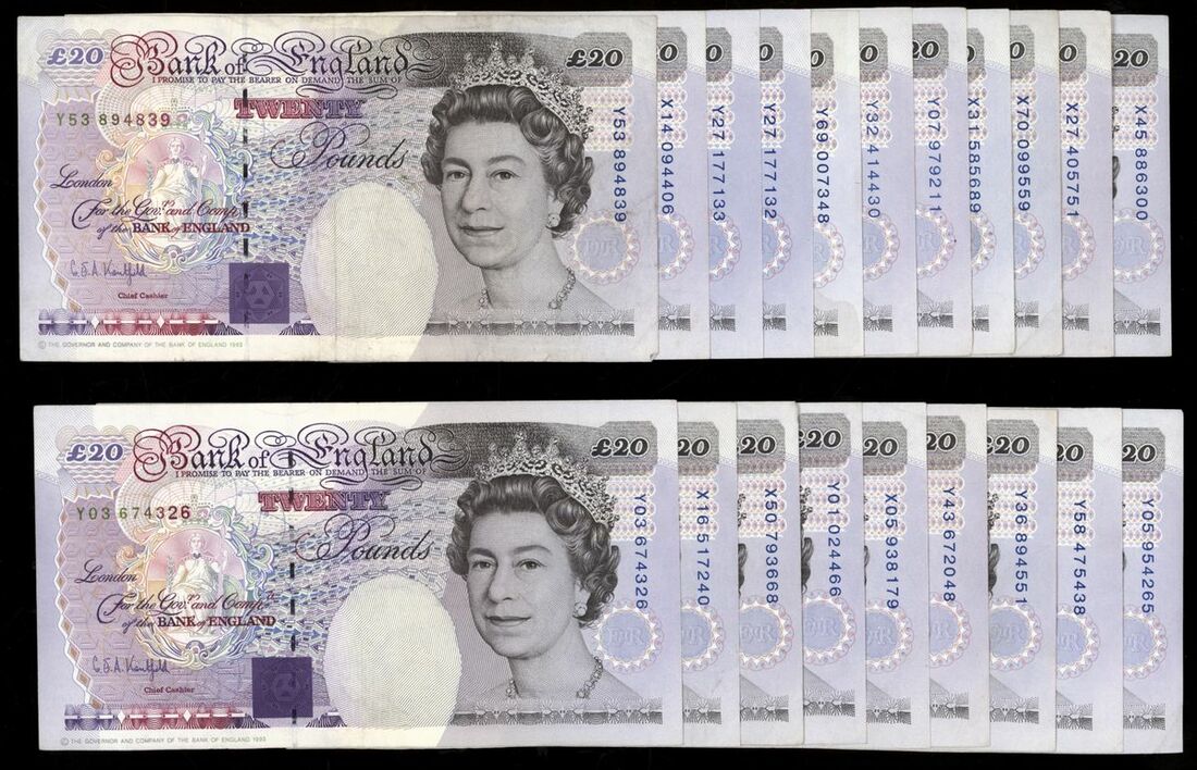 Bank of England, [20 notes] £20, London, ND (1993), G. E. A. Kentfield, prefixes X and Y