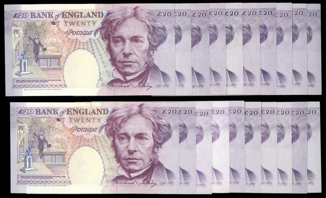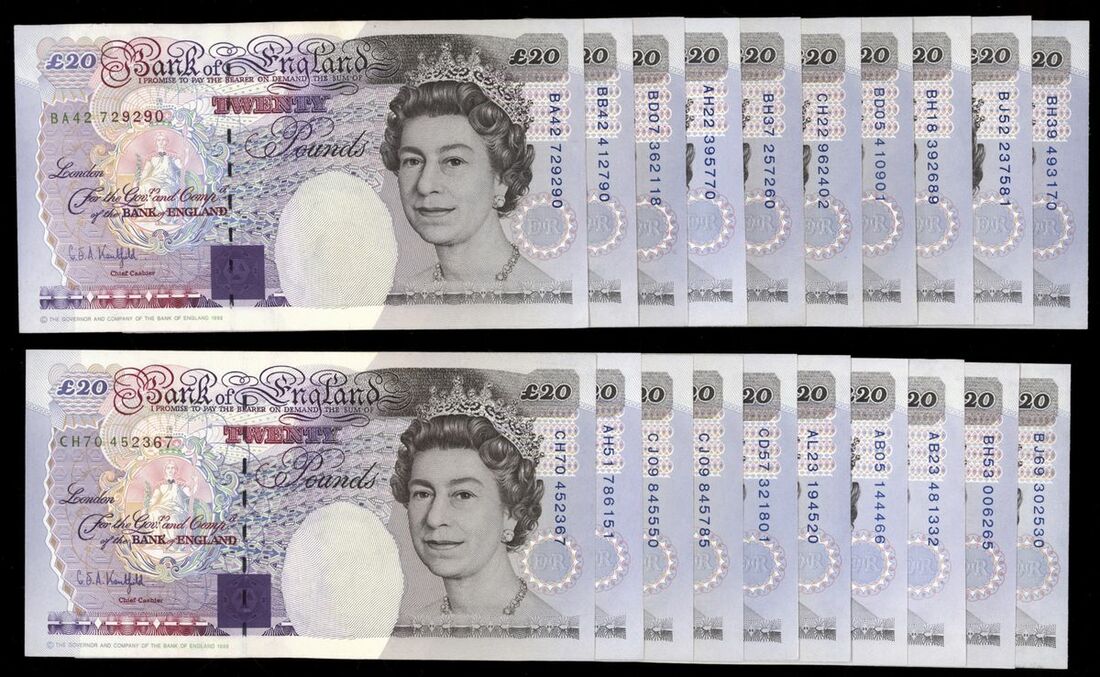 Bank of England, [20 notes] £20, London, ND (1994), G. E. A. Kentfield, (Pick 387a, EPM B375), extremely fine to uncirculated (20 notes)
