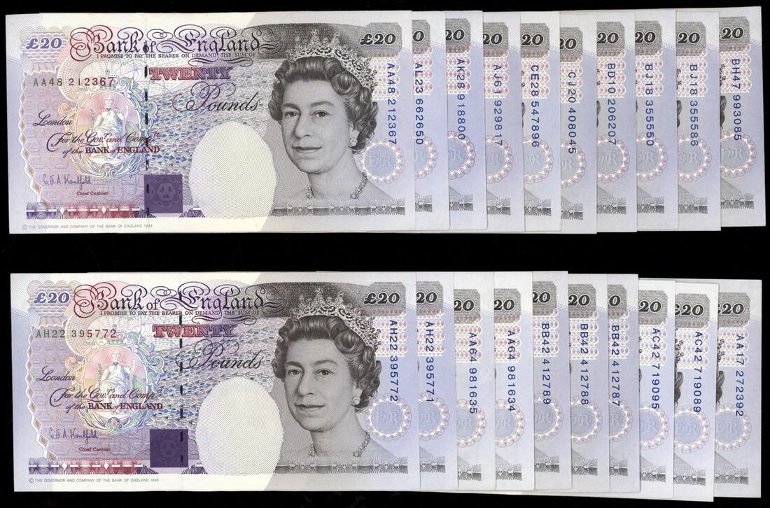 Bank of England, [20 notes] £20, London, ND (1994), G. E. A. Kentfield, (Pick 387a, EPM B375), extremely fine to uncirculated (20 notes)
