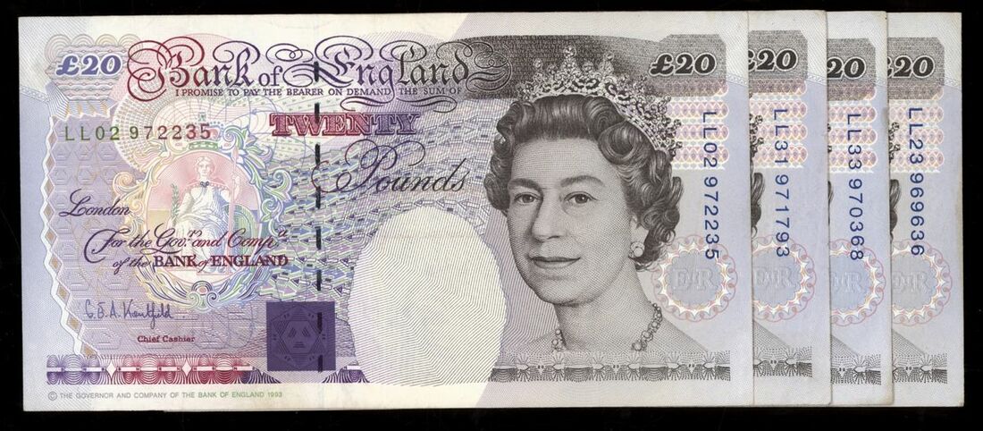 Bank of England, [4 notes] £20, London, ND (1994), G. E. A. Kentfield, replacement issues,