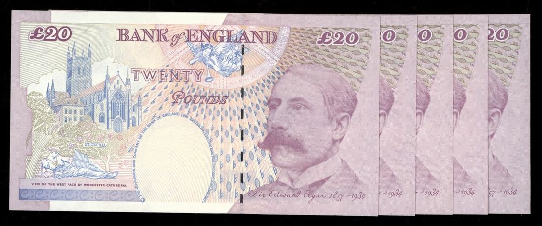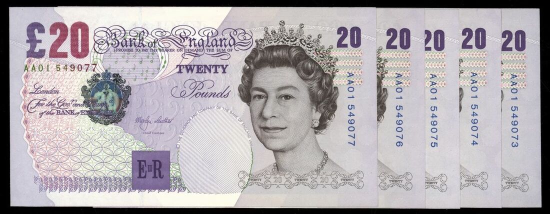 Bank of England, [5 notes] £20, London, ND (1999), M. Lowther, first prefix,