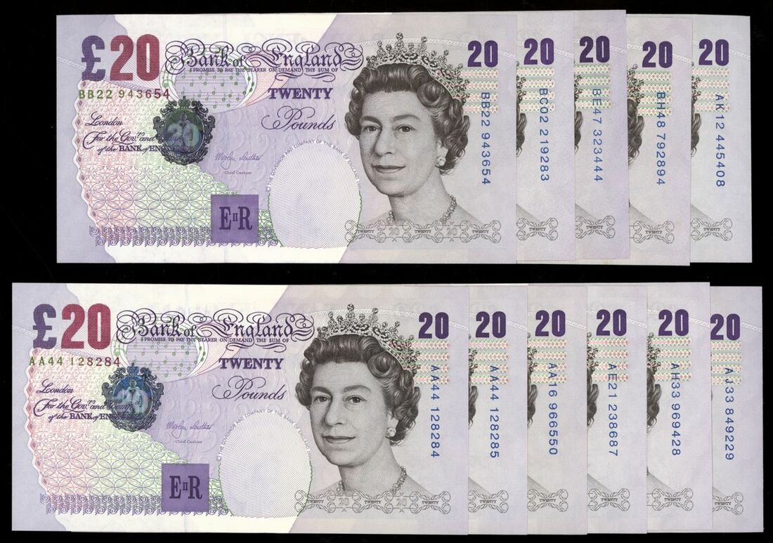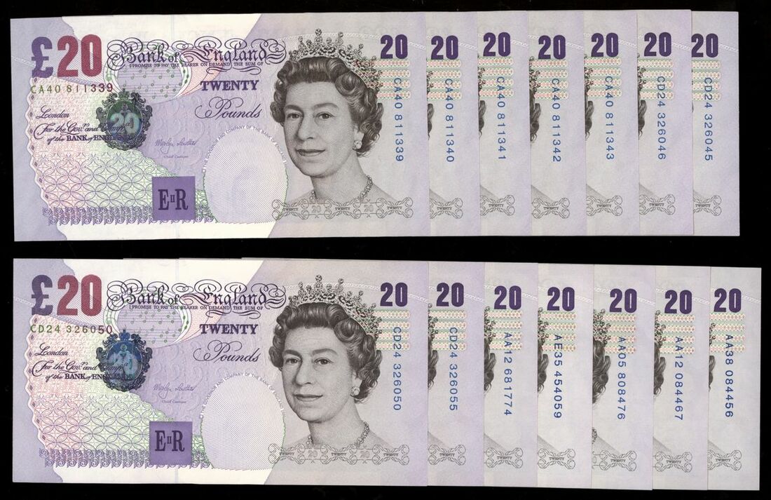 Bank of England, [25 notes] £20, London, ND (1999), M. Lowther, includes some consecutives