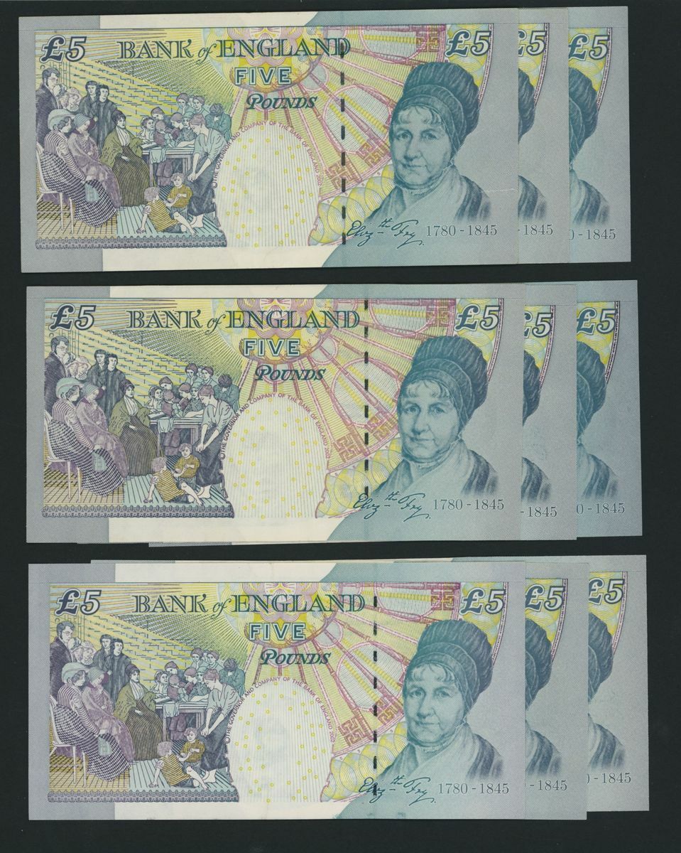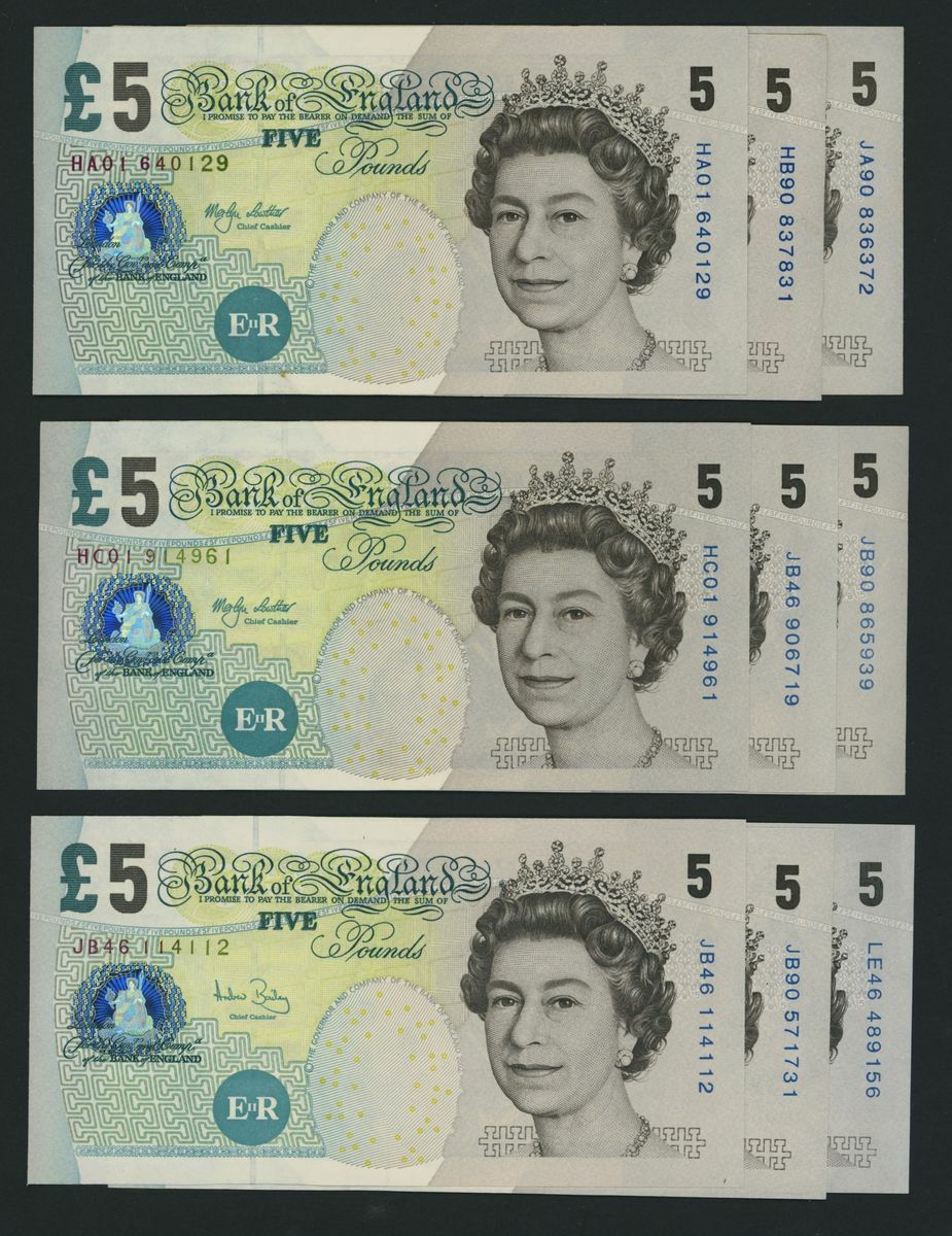 Bank of England, [9 notes] £5, London, ND (2002-2012), M. Lowther, A. Bailey, and C. Salmon,