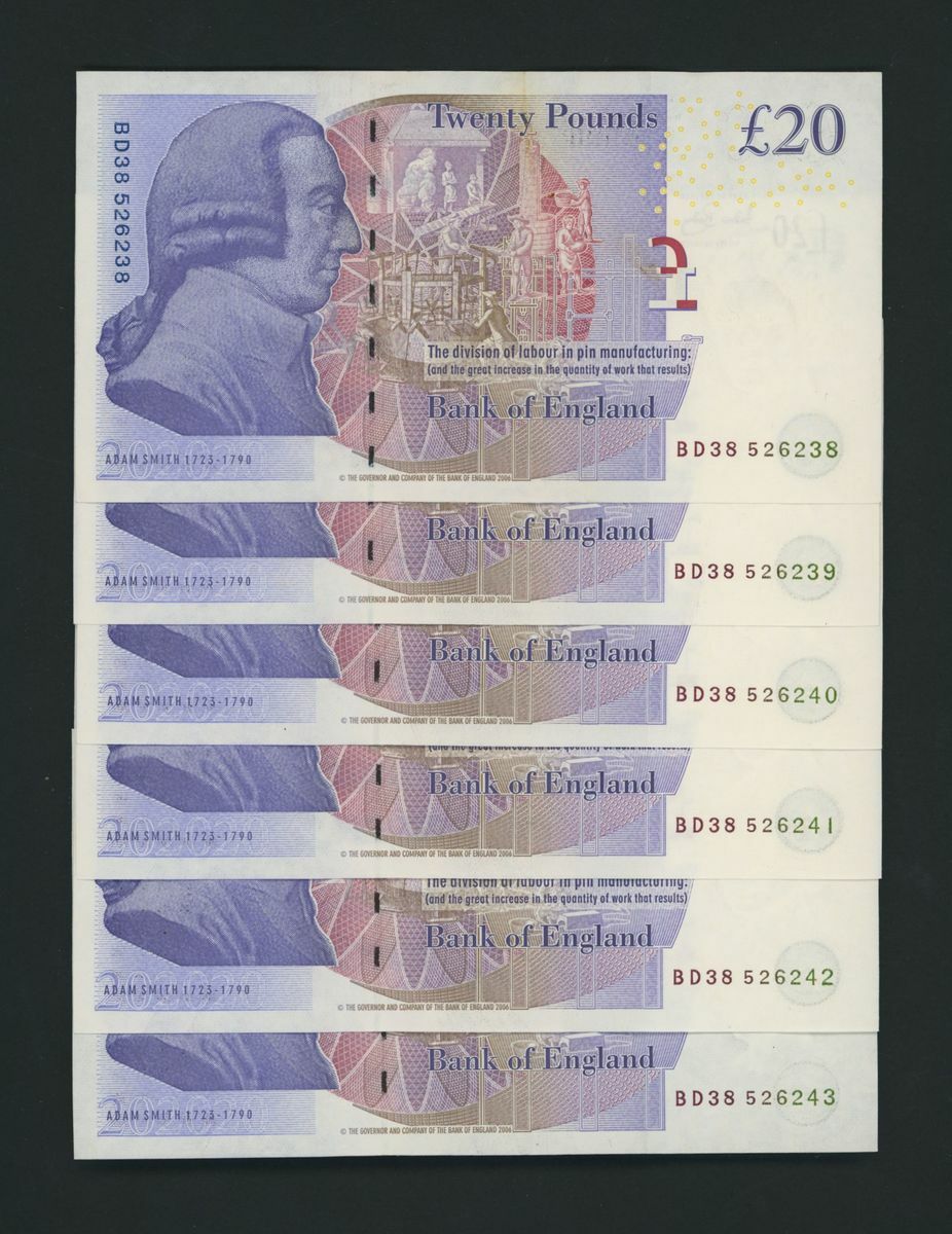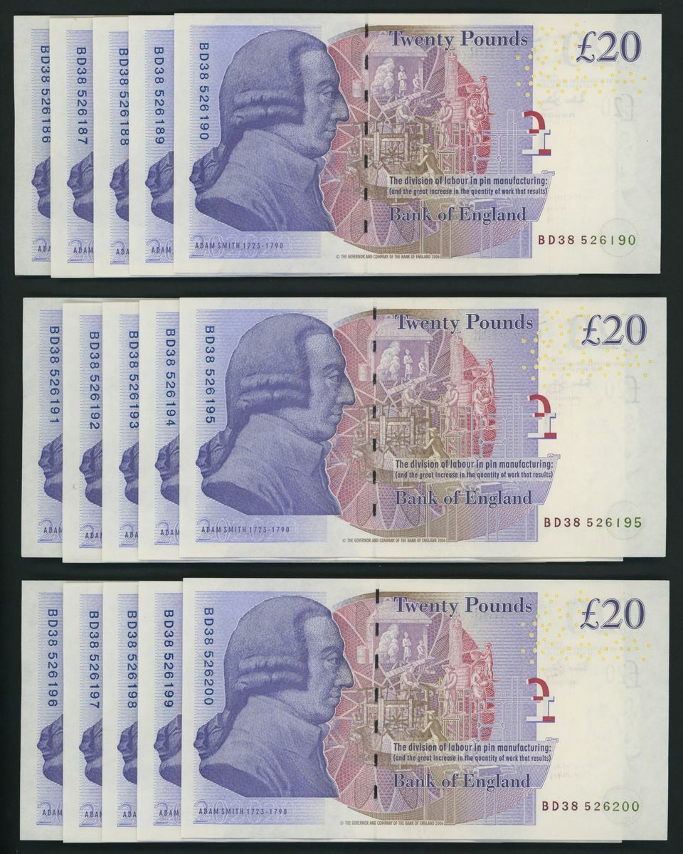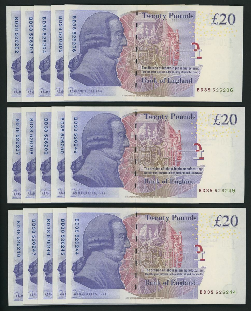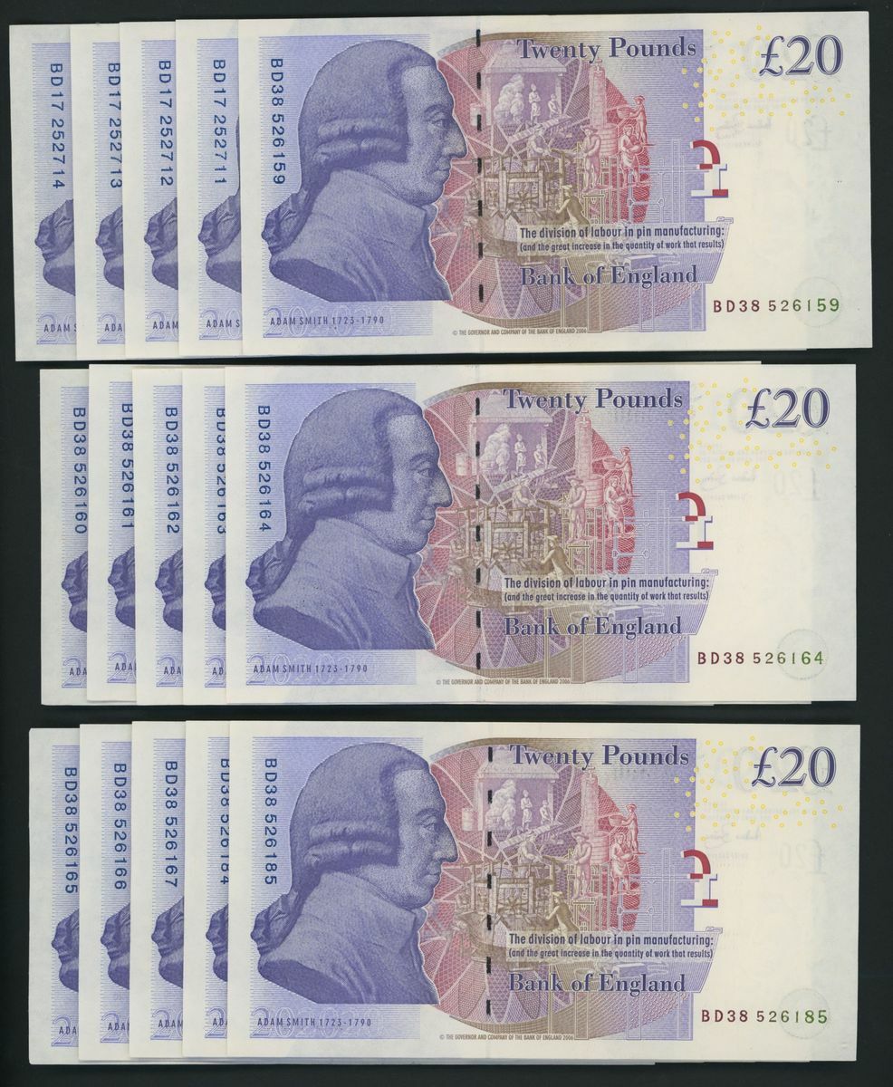 Bank of England, [50 notes] £20, London, ND (2007), A. Bailey, BD consecutive run