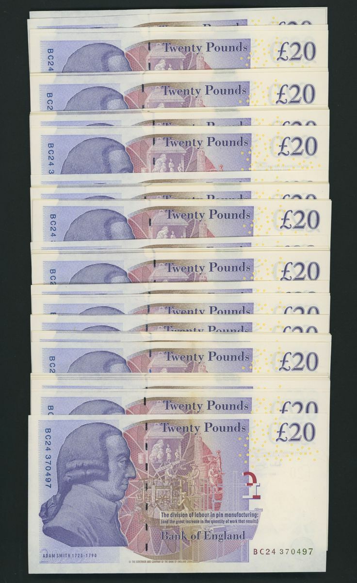 Bank of England, [100 notes] £20, London, ND (2007), A. Bailey, BC24 consecutive run