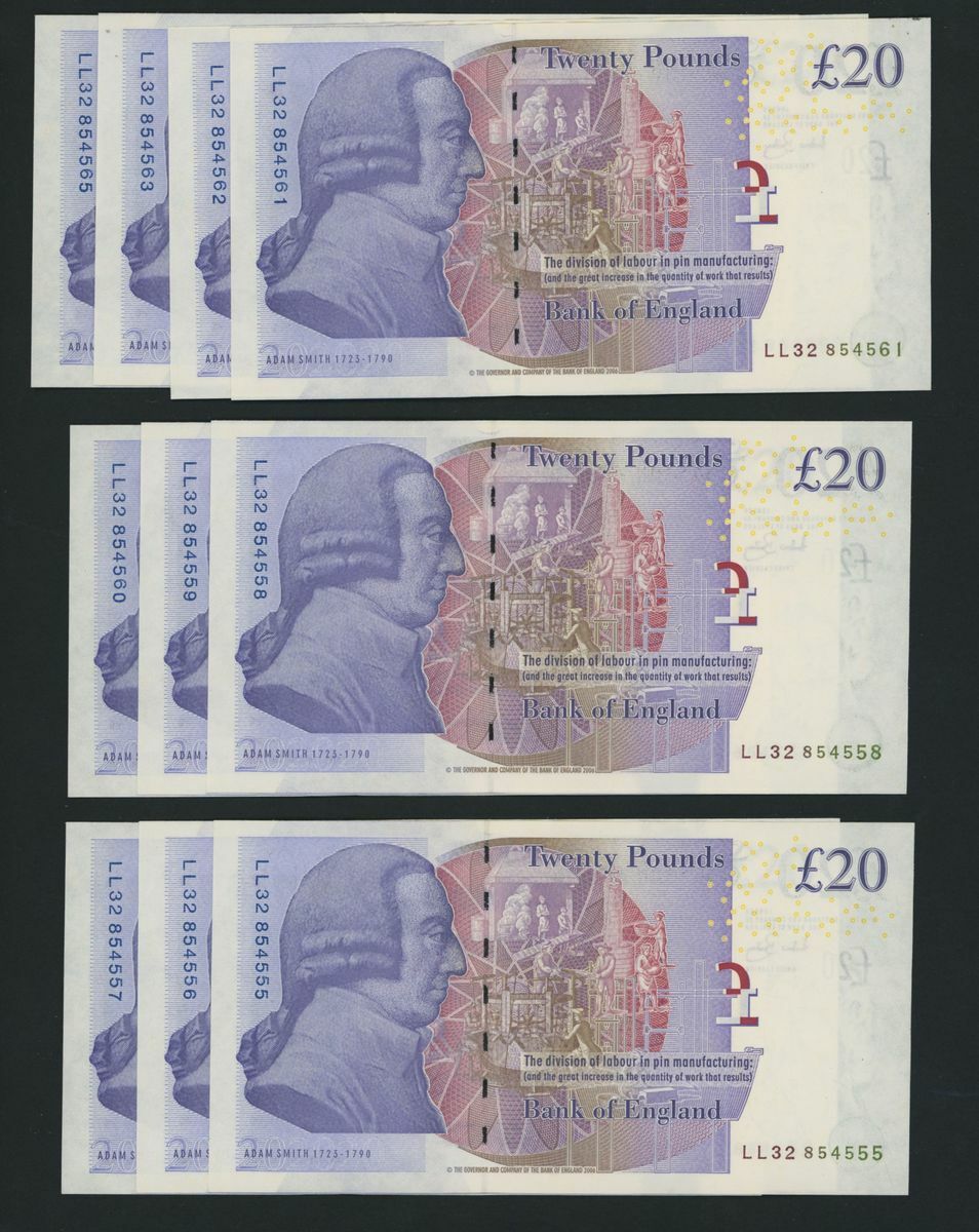 Bank of England, [10 notes] £20, London, ND (2007), A. Bailey, last issue of replacements