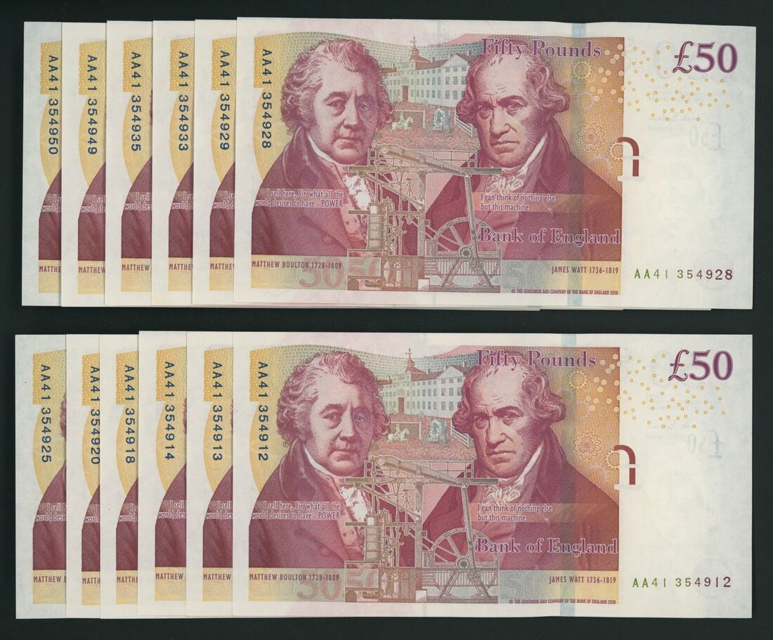 Bank of England, [12 notes] £50, London, ND (2011), C. Salmon, prefix AA41, includes consecutives