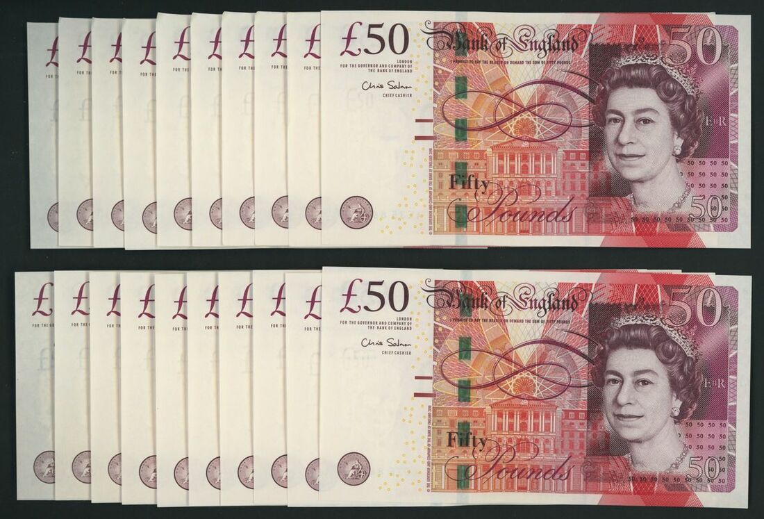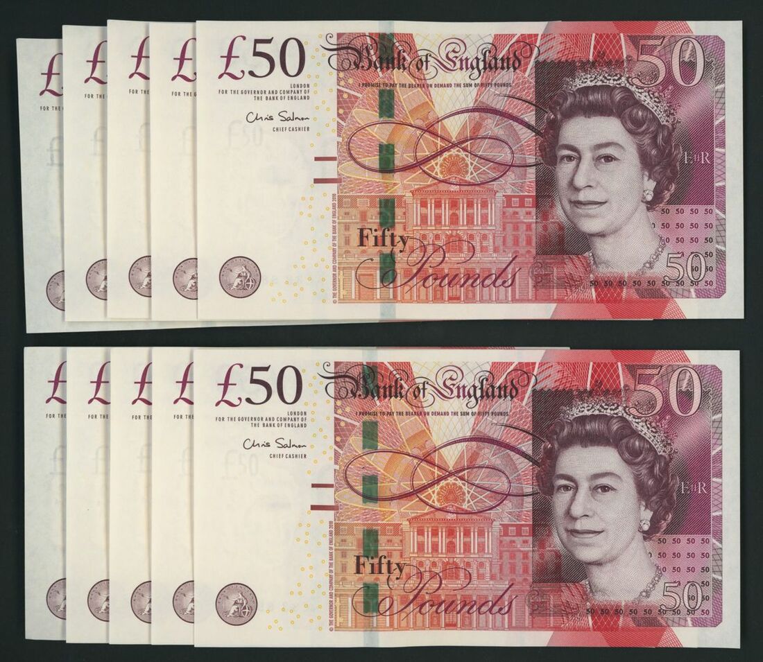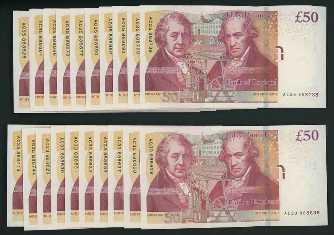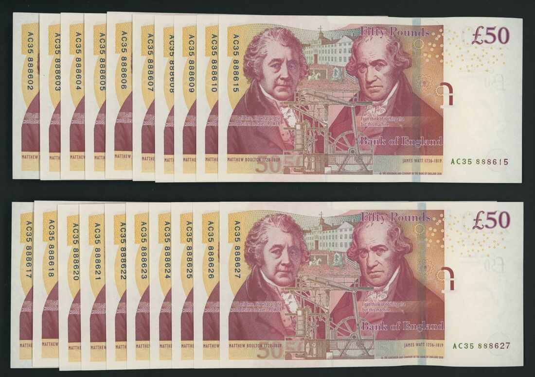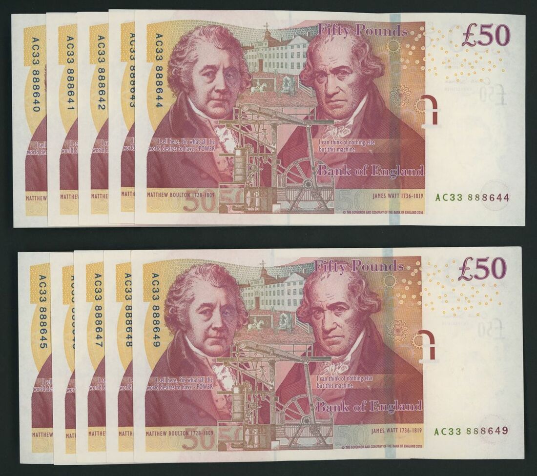 Bank of England, [50 notes] £50, London, ND (2011), C. Salmon, prefix AC33 (18) and AC35 (32), mostly consecutive, serials starting 888
