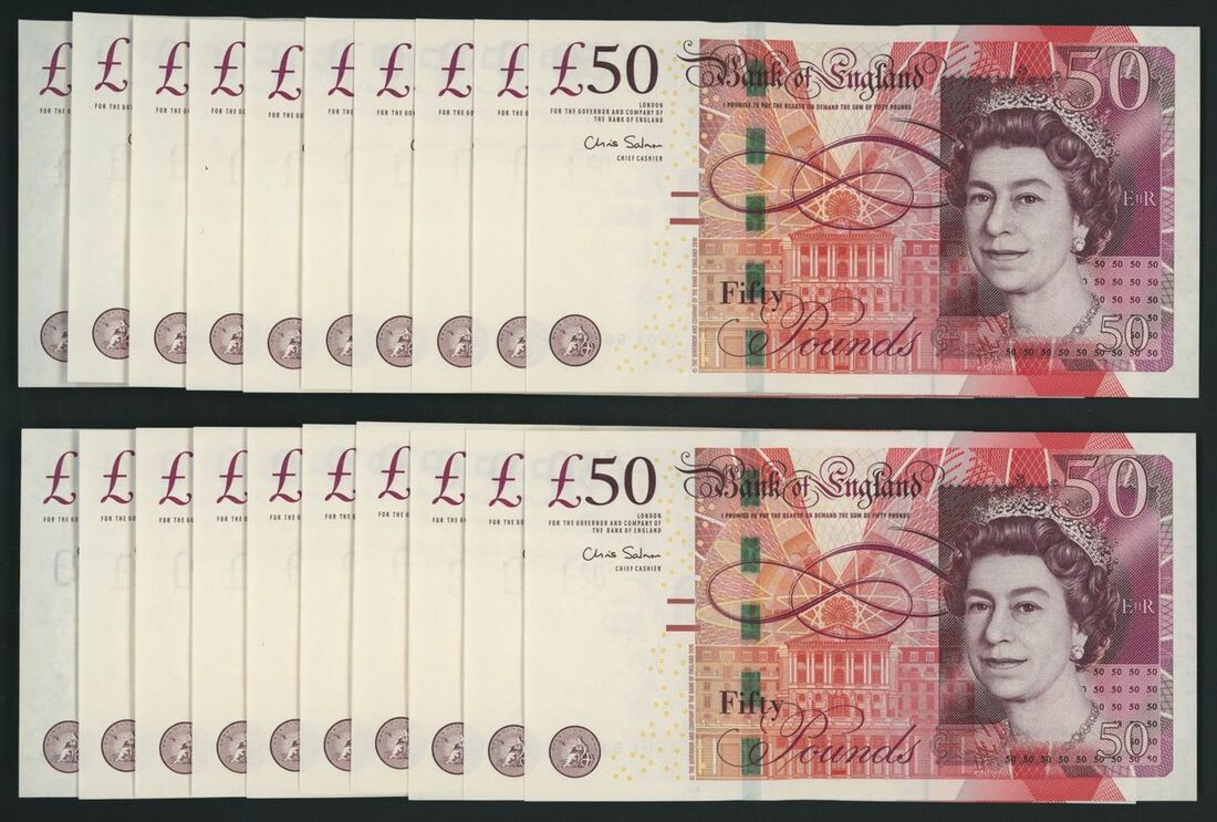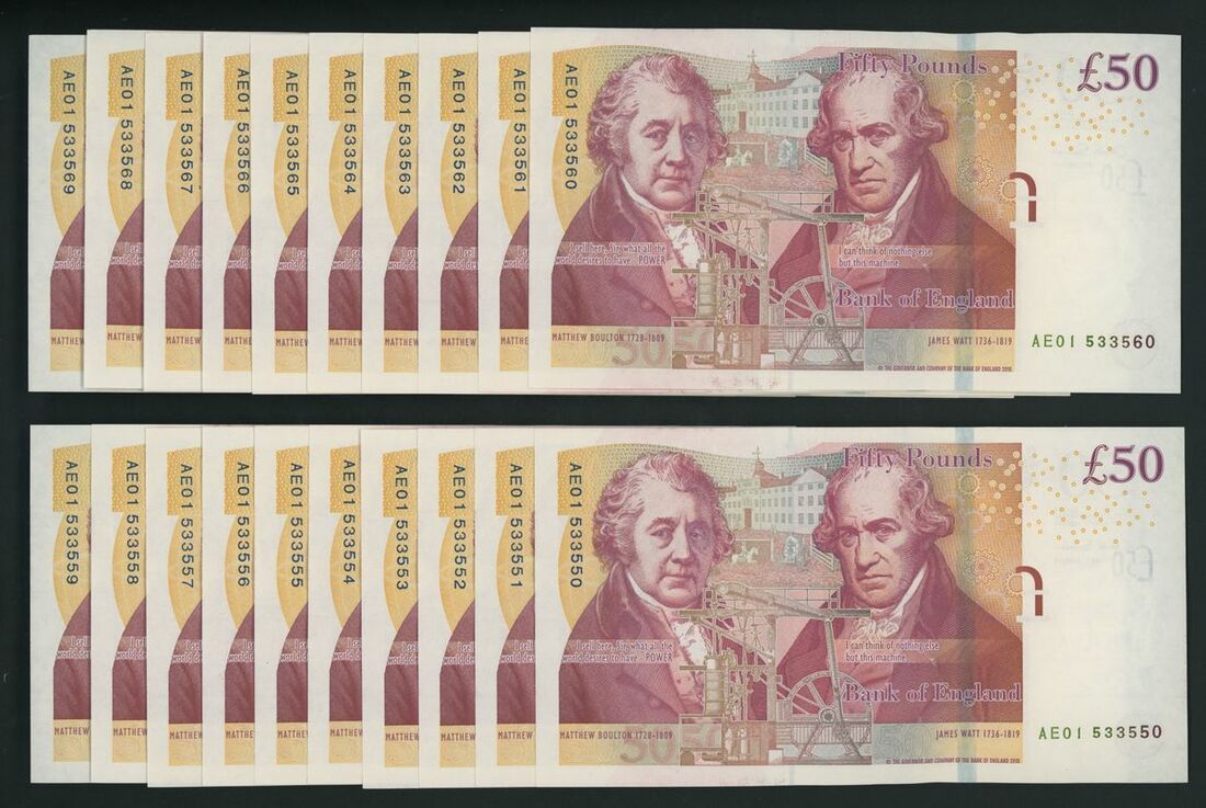 Bank of England, [20 notes] £50, London, ND (2011), C. Salmon, consecutive run, nos. AE01 533550-533569