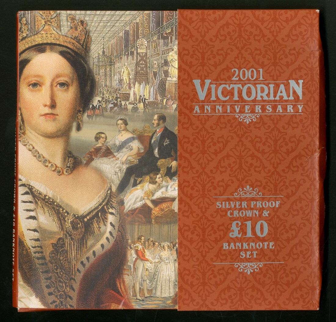C160 Queen Victoria Centenary: £10 special prefix VR10 000435 with silver proof £5 coin;
