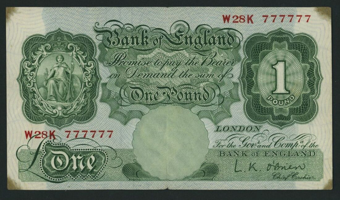 Bank of England, £1, ND (1955), L. K. O'Brien, lucky number W28K 777777