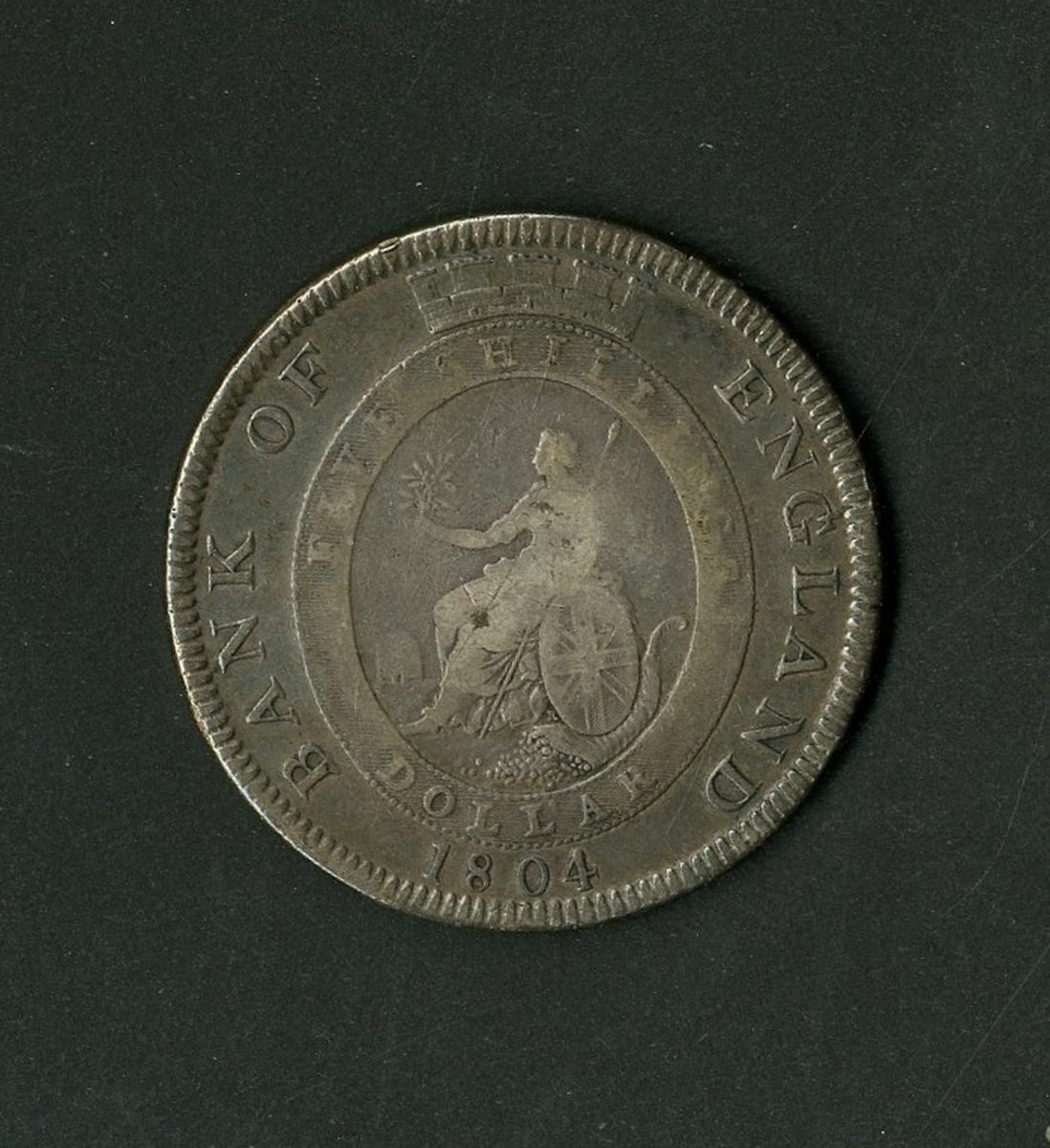 Bank of England, 5 Shillings Dollar, 1804, silver Five Shillings Dollar overstruck on Spanish-American 8 Reales, with laureate, draped and cuirassed bust George III and Britannia seated in crowned oval band