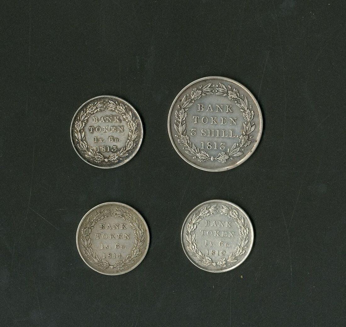 Bank of England, [4 coins] 3 Shillings, 18 Pence, 1812-1814, Bank of England second type Bank Tokens,