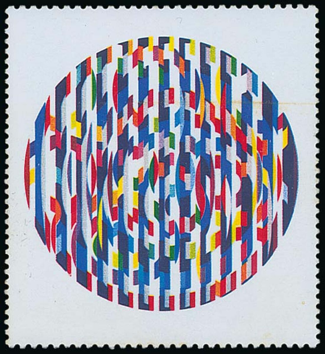 1980 4,00fr. Agam, variety black omitted and showing also an additional occasional horizontal yellow line across the upper half of the stamp, unmounted mint, fine and rare. Signed Calves on the reverse. Spink Maury 2113a, $3,000. Photo