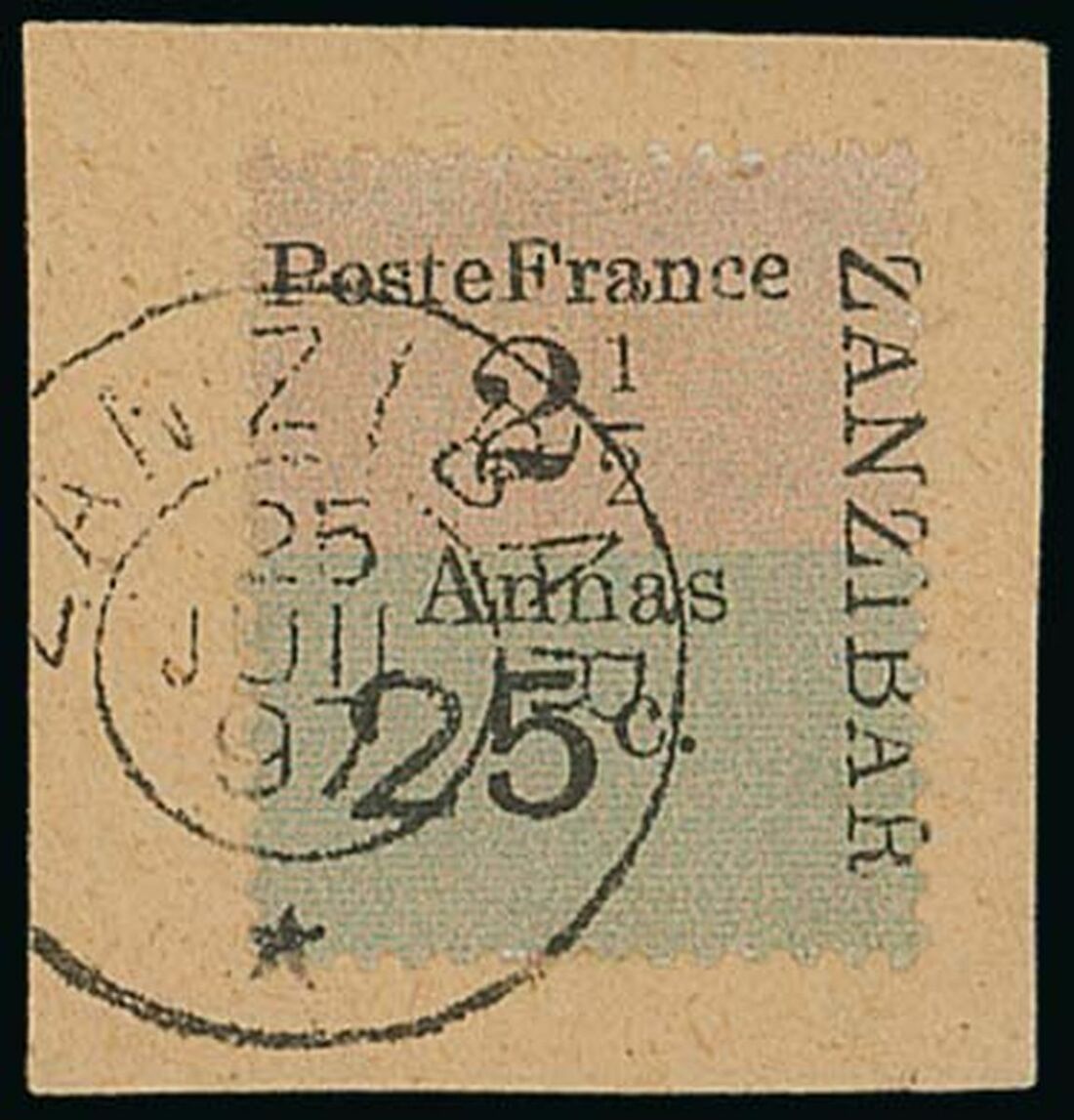 1897 (20 July) 2½a. on 25c. on green and white, used and tied to piece by