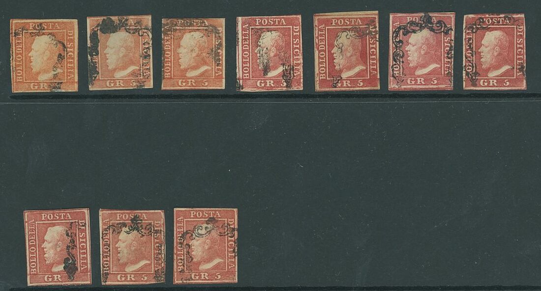 1859 5g. a selection (10) of used examples with some shades. Mixed condition. Sassone 9-11 group.