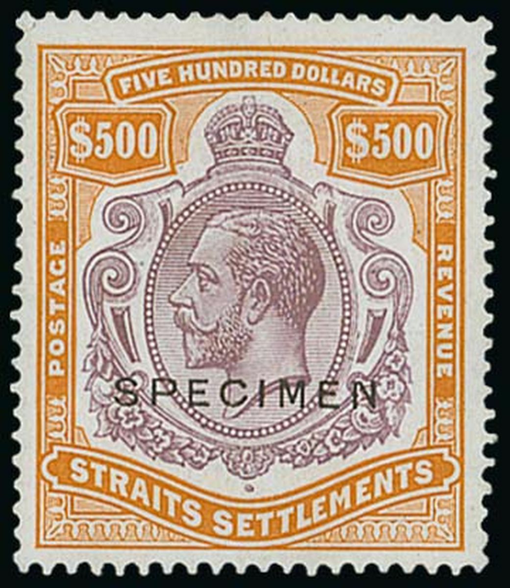 1921-33 Script $500 purple and orange-brown showing broken Crown and scroll, overprinted