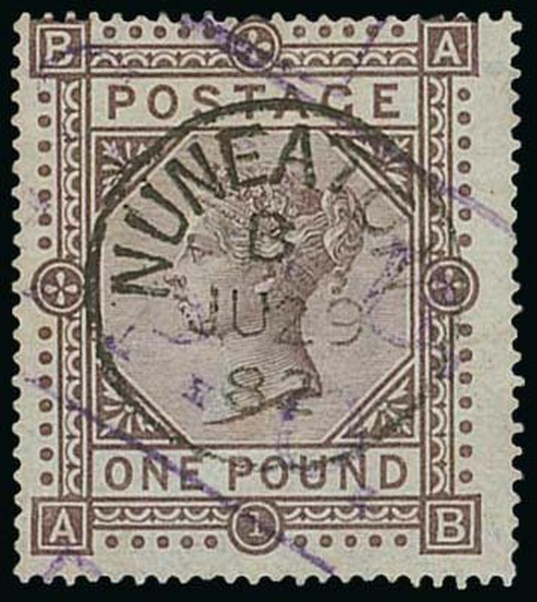 £1 brown-lilac, Pl. 1, AB, centred to upper left, used with clear central