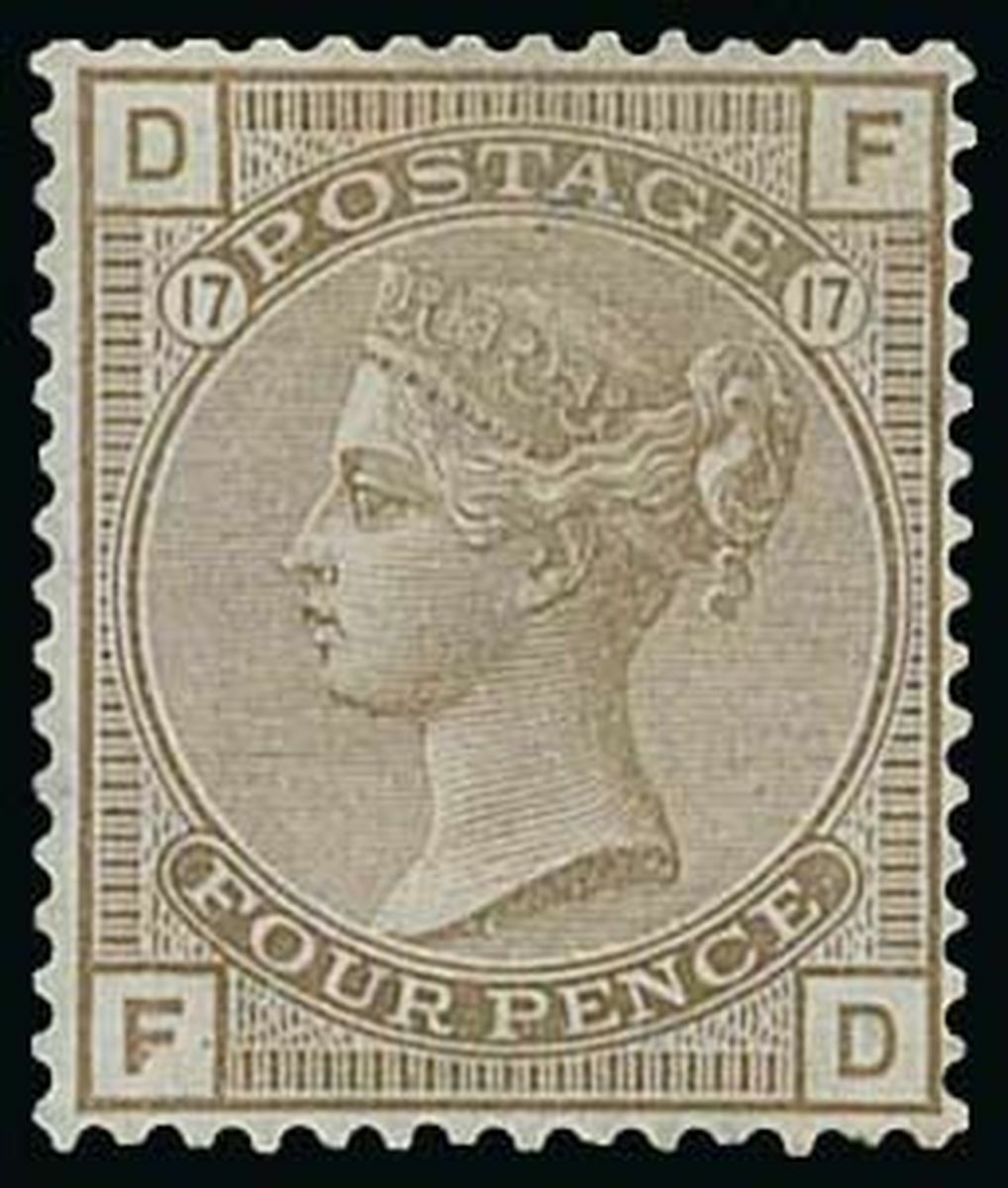 4d. grey-brown, Pl. 17, FD, well-centred and with good colour; part original gum. S.G. 154, £2,800