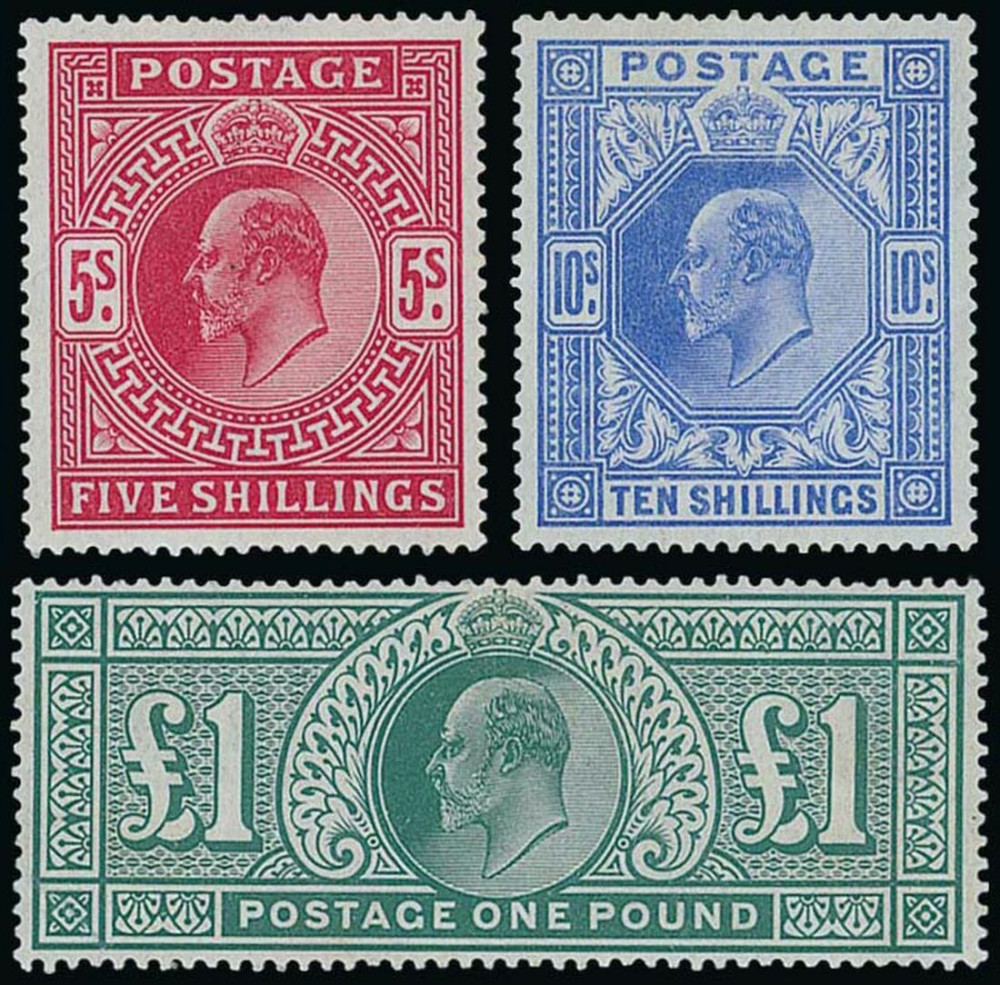 2/6d. lilac, 5/- carmine, 10/- ultramarine and £1 dull blue-green, large part original gum, a few minor gum wrinkles; fine. S.G. 260, 263, 265 and 266, £3,725