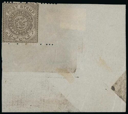 1a. drab, a lower right corner example with full sheet margins on two sides, variety imperforate vertically, large part original gum, fine and most attractive, An unrecorded variety for this shade. S.G. 14bvar. Photo