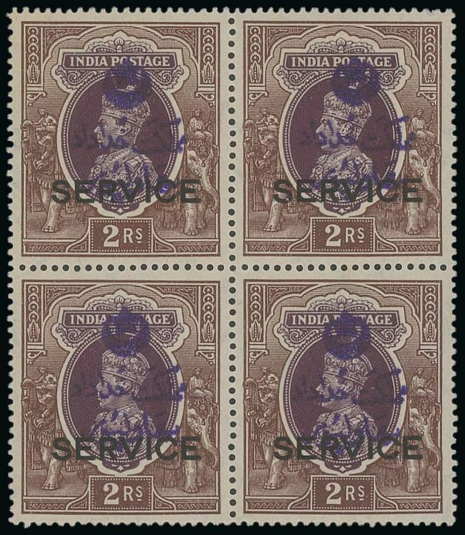 1937-39 2r. purple and brown block of four handstamped in purple, unmounted mint, fine and rare. R.P.S. Certificate (2022).