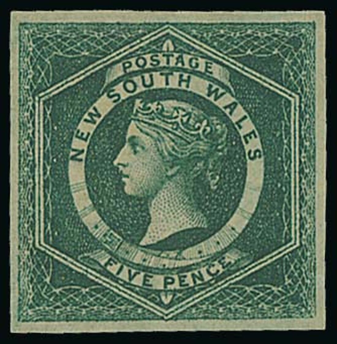 5d. dull green with watermark inverted and reversed, unused without gum, large margins and colour, fine. Rare. Ceremuga Certificate (2012). S.G. 88, £2,000+. Photo