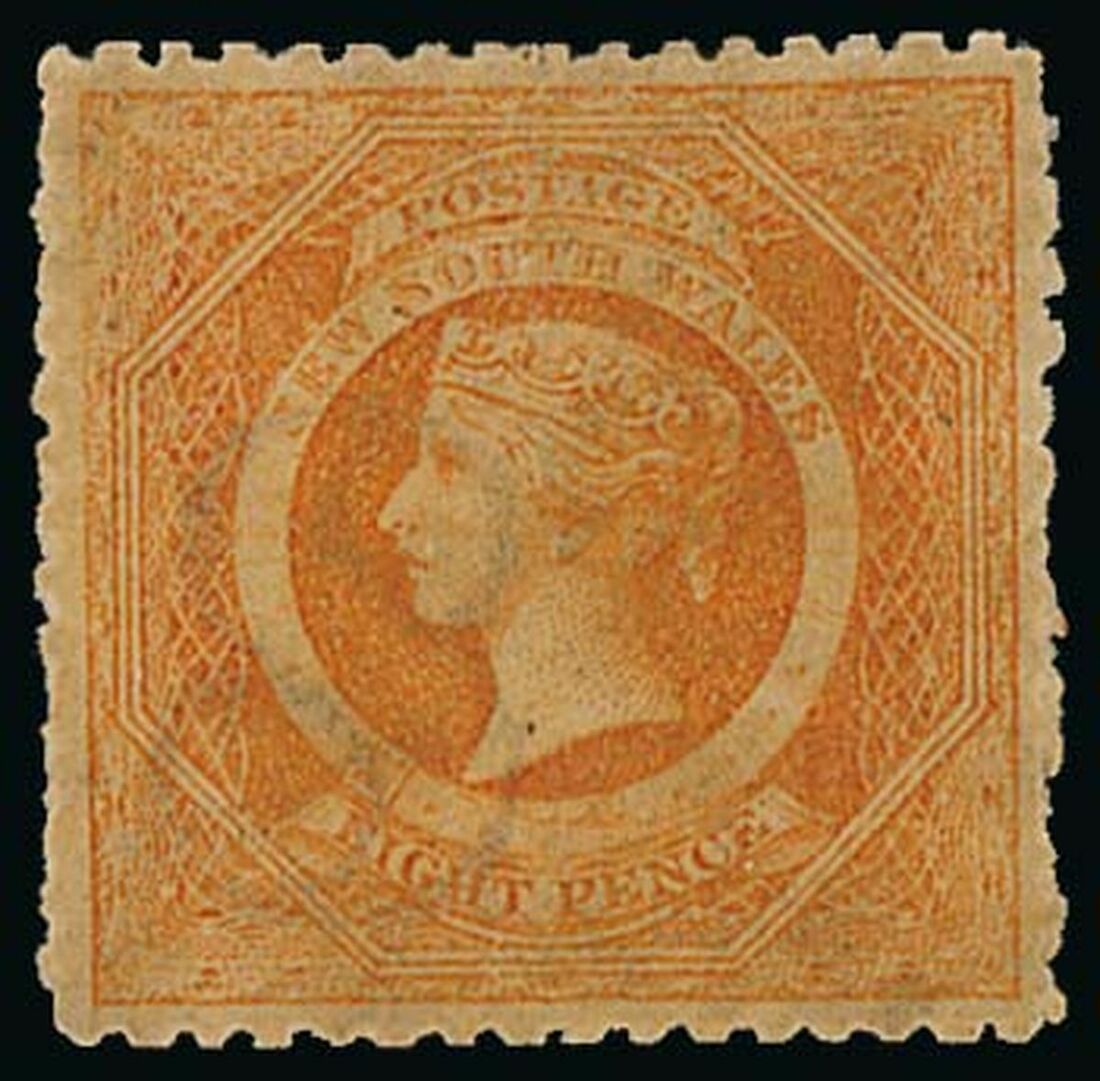 1860-72 perf 12 8d. orange, unused with large part original browned gum, fine. Very rare.  R.P.S. Certificate (1939). S.G. 150, £7,500. Photo