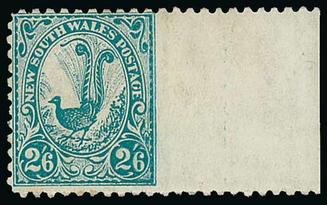 1902-03 perf 11 2/6d. green, variety imperforate between stamp and margin at right, fine mint. Rare. S.G. 328 var; BW N68b, $2,500. Photo