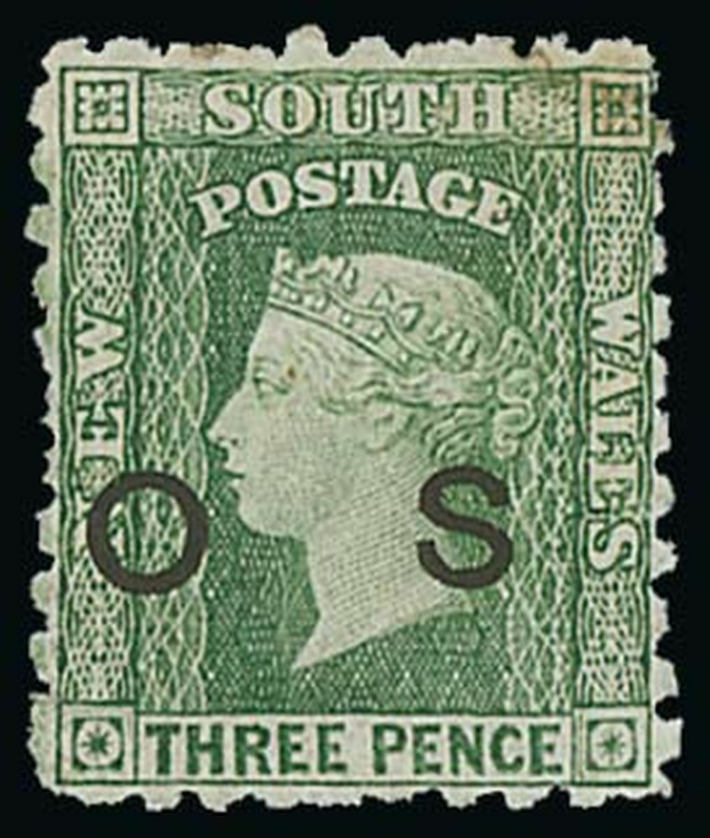 1882-85 3d. yellow-green, perf 10, variety without watermark and overprint double, one albino, fine mint. Ceremuga Certificate (2005) which states "only example known to me". S.G. O22aa var. Photo