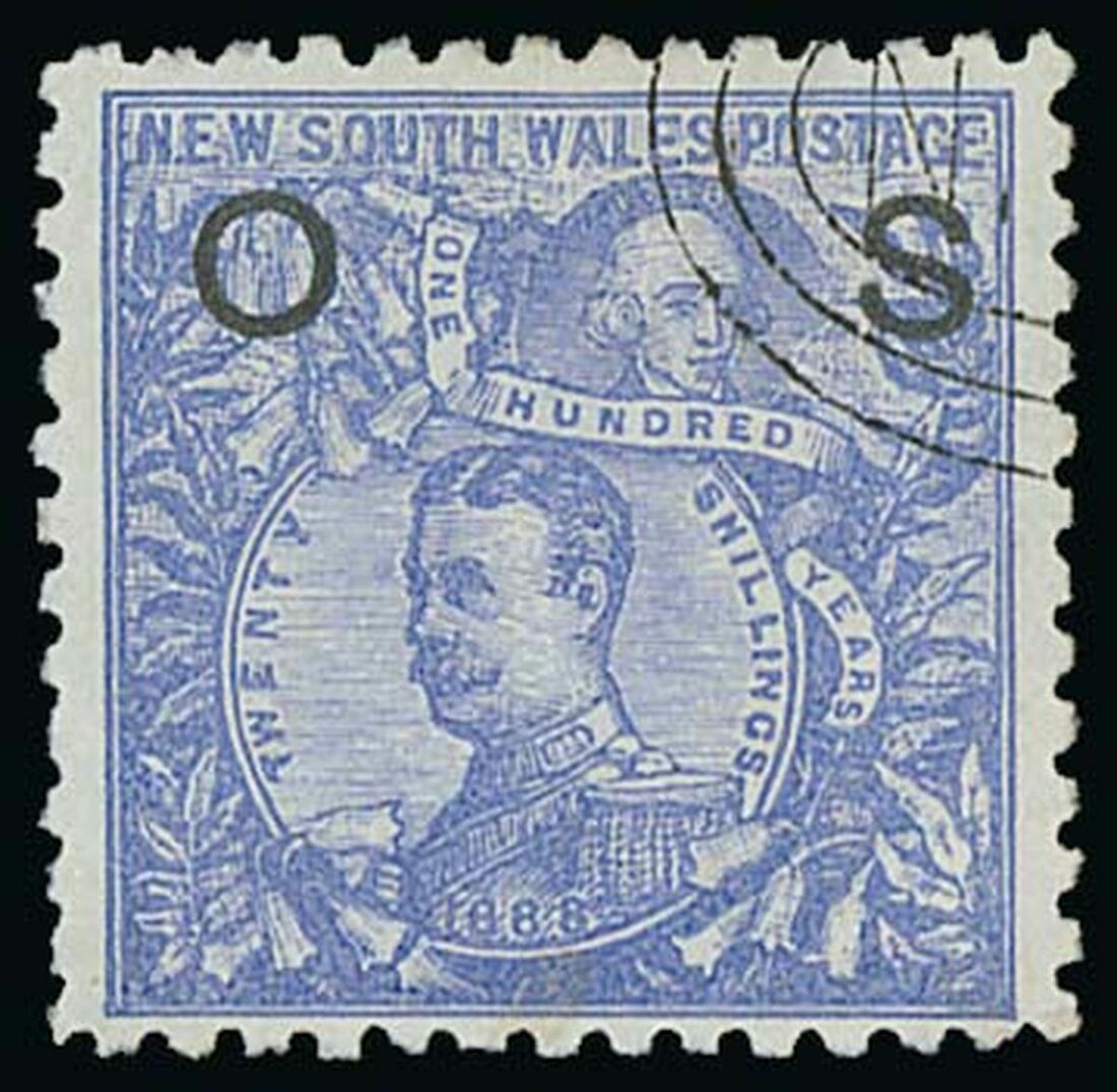 1890-91 Carrington 20/- ultramarine, perf 10, fresh cancelled to order. B.P.A. Certificate (2004). S.G. O50, £1,100. Photo