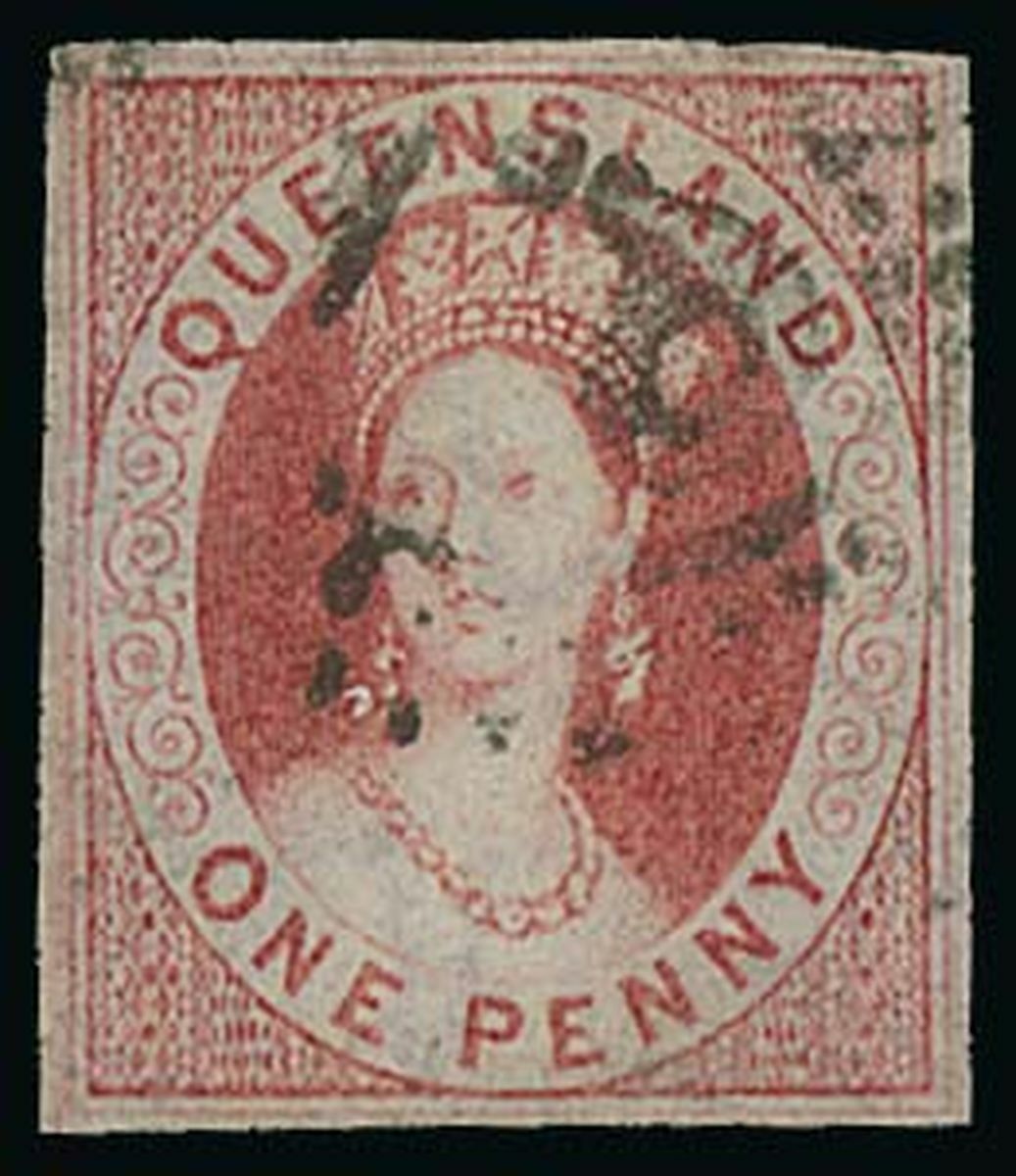 1860 wmk. Large Star, imperf 1d. carmine-rose with large margins, indistinctly cancelled, fine. S.G. 1, £850. Photo