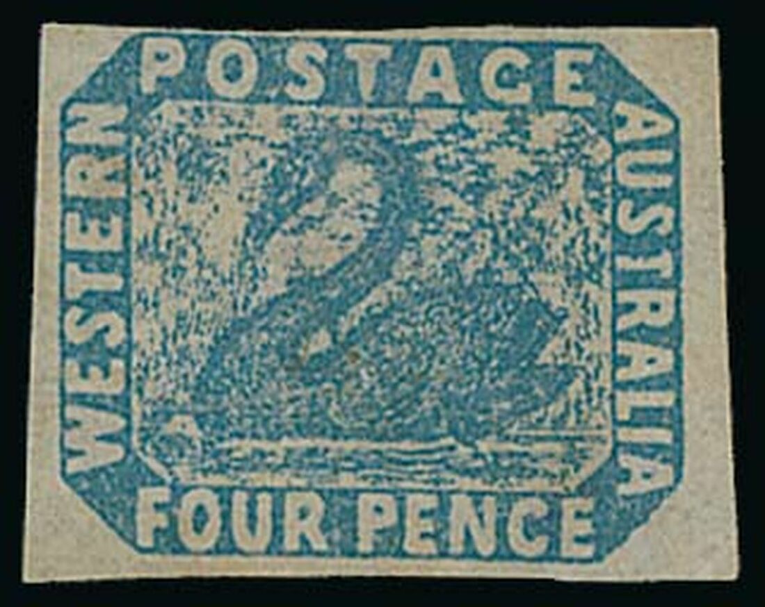 1854-55 imperf 4d. blue showing