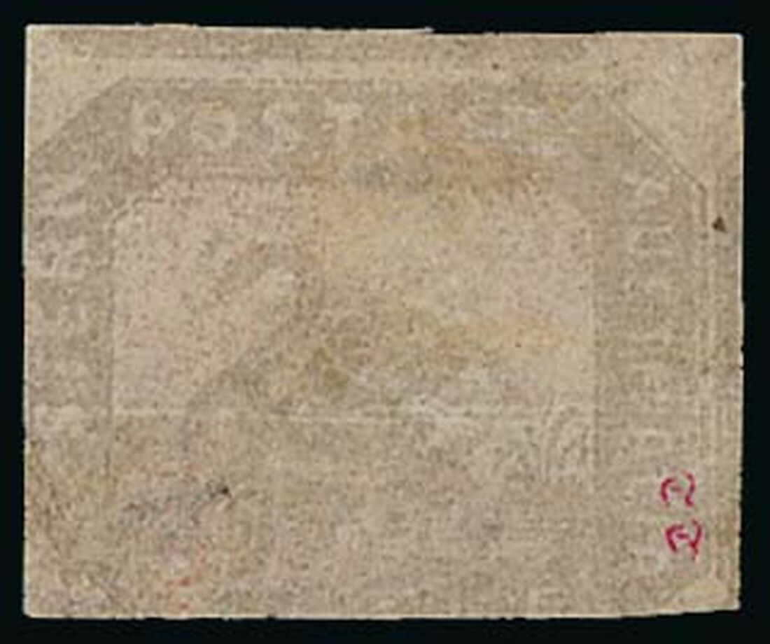 1857-59 2d. brown-black on red, error printed both sides, the second printing upright, margins close or touching, cancelled by light void obliterator, fine and scarce. S.G. 15a, £900. Photo