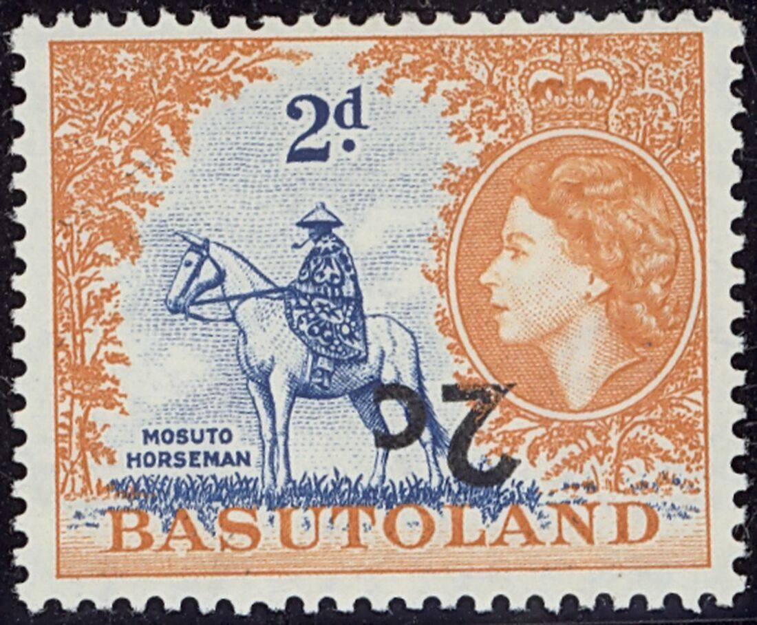 1961 2c. on 2d. deep bright blue and orange, variety surcharge inverted, fine unmounted mint. S.G. 60a, £300