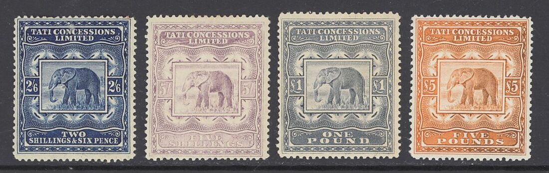 2/6d. blue, 5/- violet, £1 blue and £5 orange; all with part original gum, some natural gum wrinkles in places. Barefoot 2, 3, 5 and 6