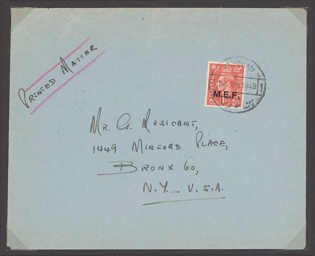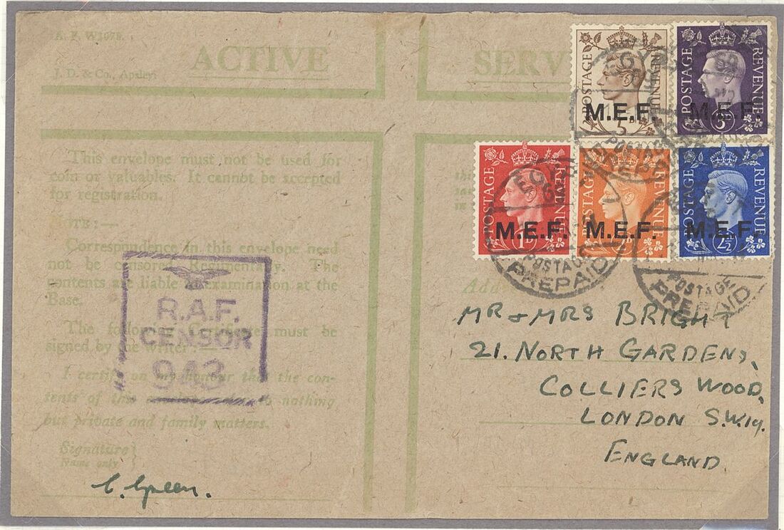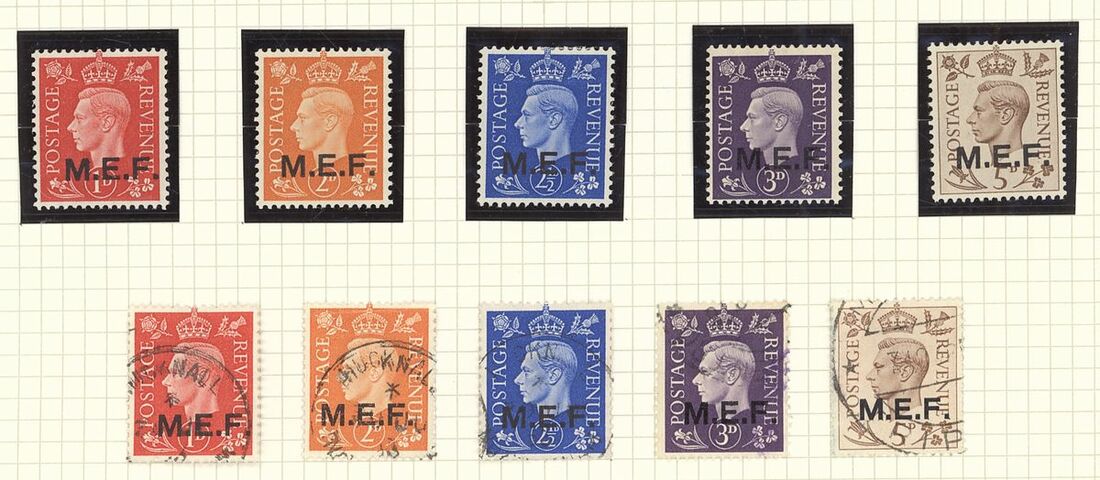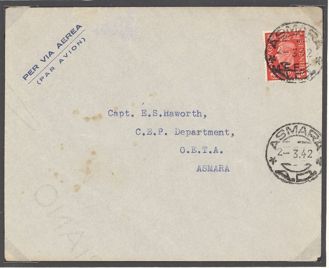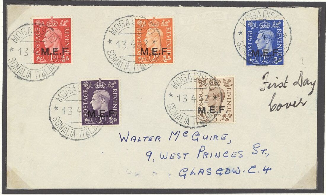 1942-47 mint and used group of Middle East Forces on album pages including mint and used sets, varieties and range of covers including 1d. used on first day of issue on envelope to Asmara, envelope from Mogadishu to Glasgow bearing 1d., 2d., 2½d., 3d. and 5d., used on first day of issue, envelope from Asmara to USA bearing 1d., 2d., 2½d., 3d. and 5d., active service envelope from Egypt to London bearing 1d., 2d., 2½d., 3d. and 5d., etc. A useful and good group