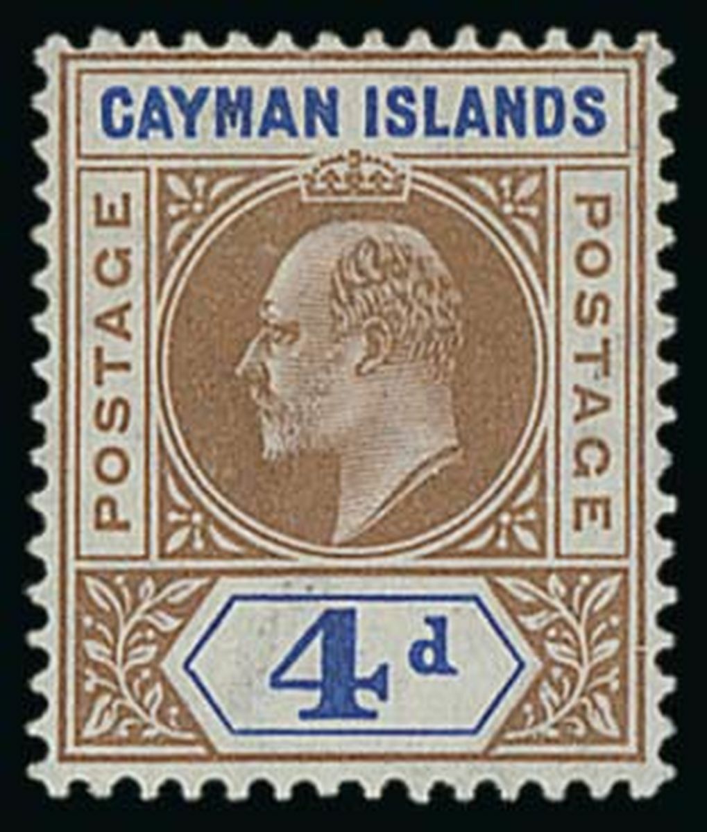 1907 MCA 4d. brown and blue showing variety slotted frame (R.1/4), fine mint. S.G. 13 var. Photo