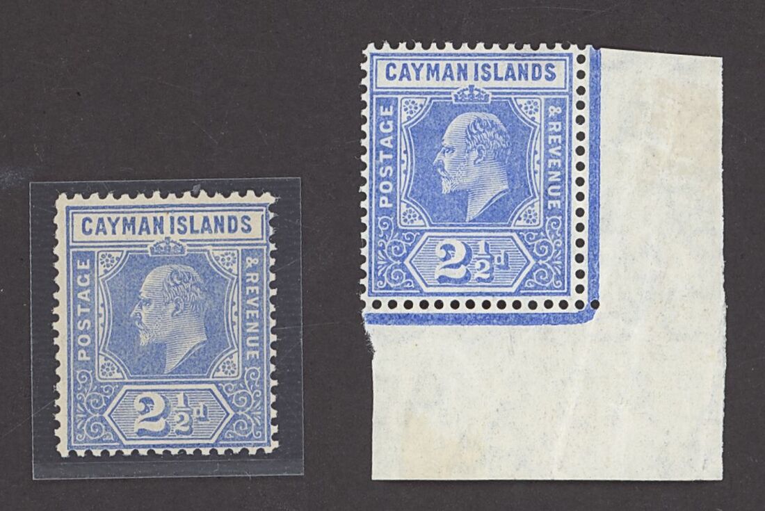 1907-09 MCA 2½d. ultramarine showing variety damaged frame and crown, fine mint; with a normal corner example for comparison. S.G. 27a, £325