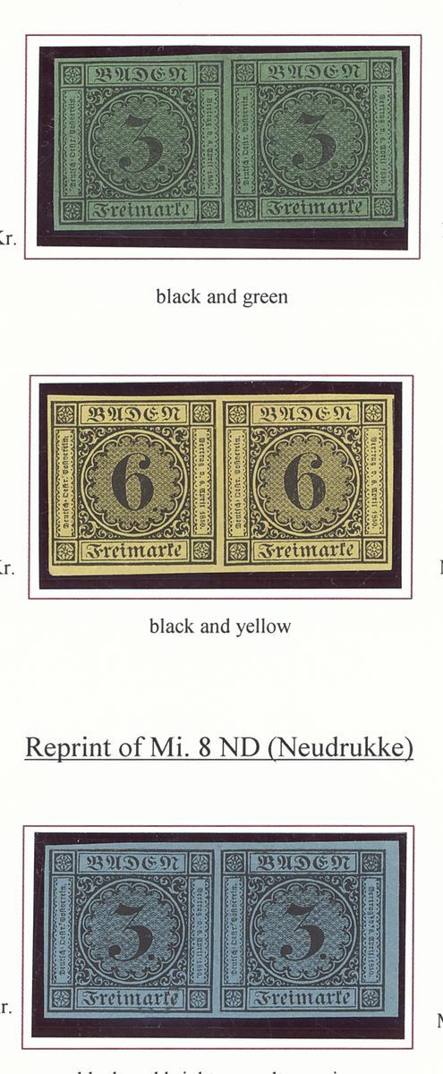 1853-58 3k. black on green, 3k. black on blue and 6k. black on yellow, reprints in horizontal pairs with large part original gum; fine. Michel 6ND-ND, €740