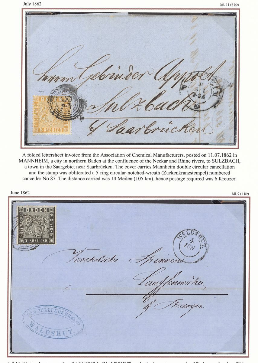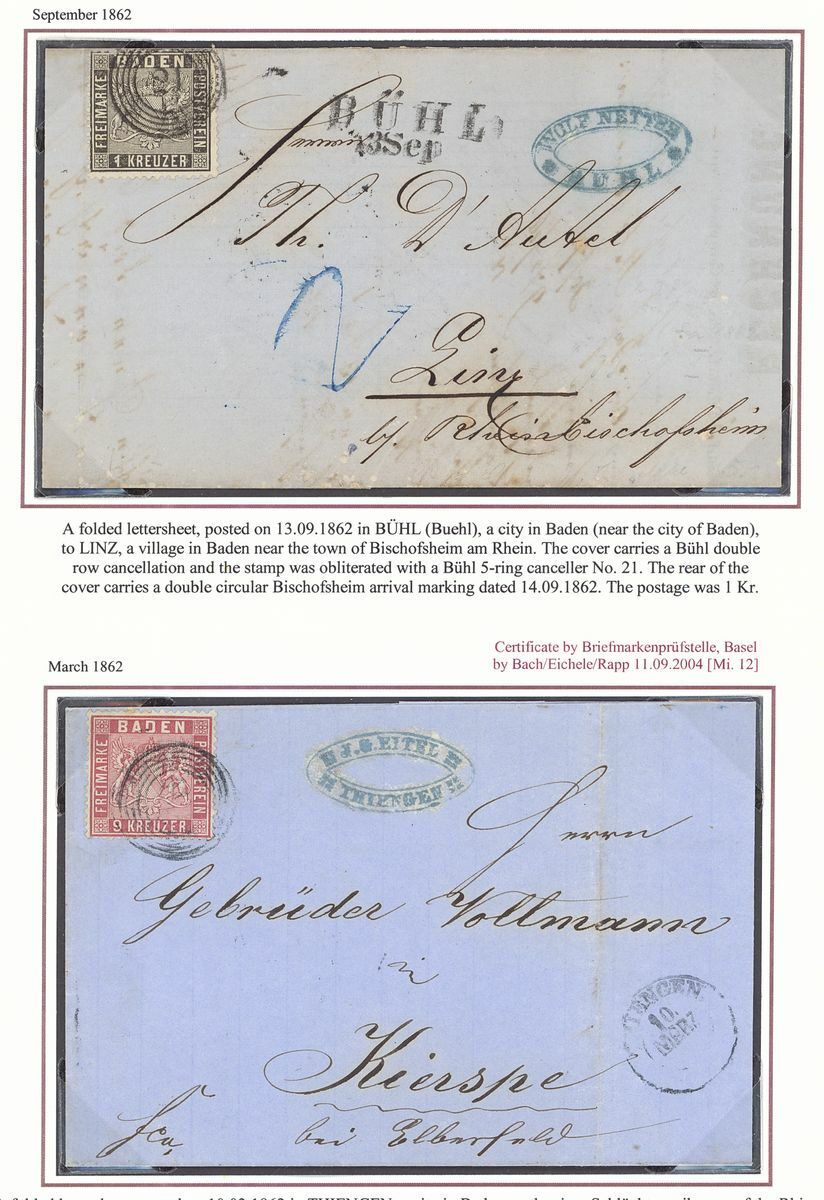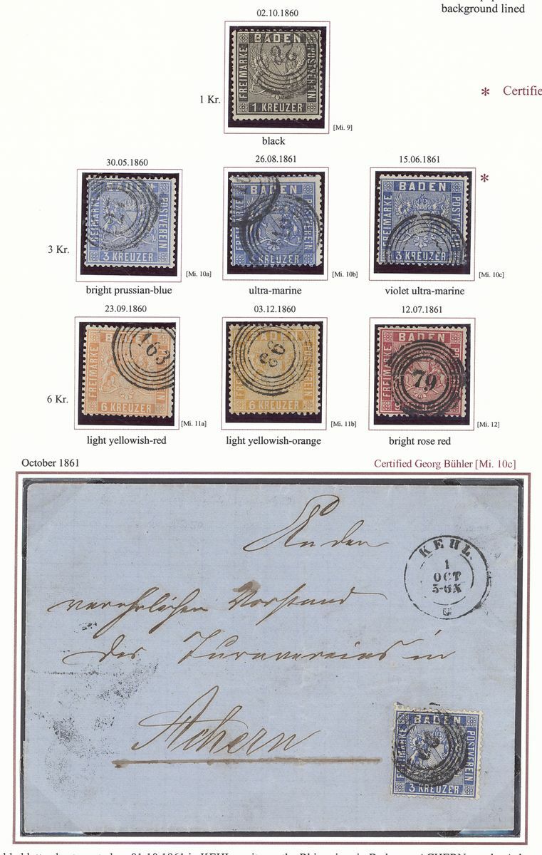 1860-62 perf. 13½, selection of seven stamps and twelve entires, including 3k. (3, shades), 6k. (2), 9k., entires with 1k. single and pair, 3k. (4) on entires, 6k. (3 on entires), 9k. (2 on entires, one with Eichele Certificate 2004), etc., chiefly good to fine