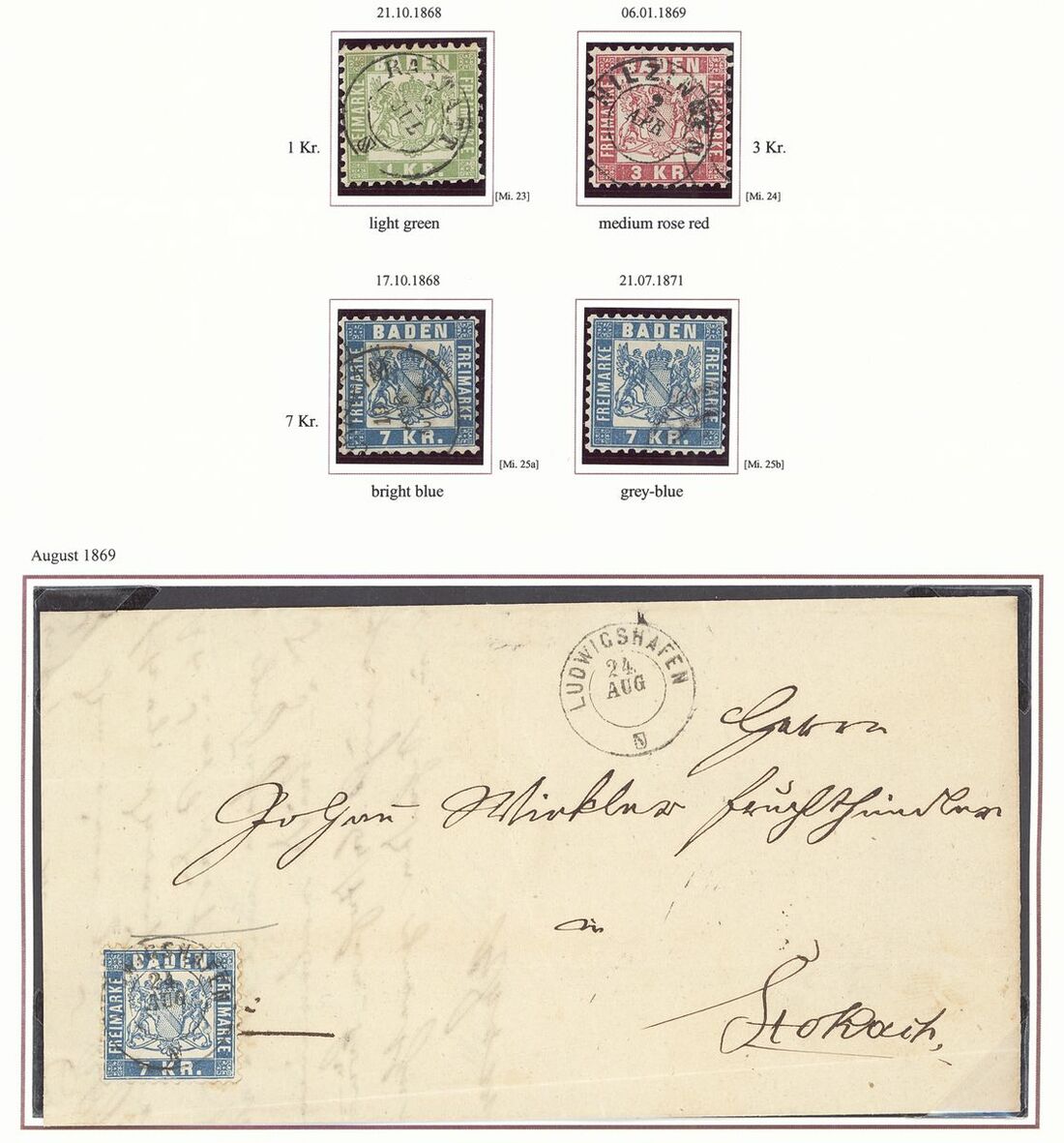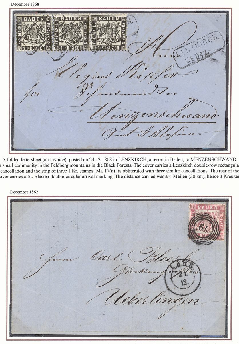 1862 dotted background, perf. 10 1k. (2), 6k. (2), 9k. (5, one on entire), 1862-65 plain background, perf.10 1k. (2), 3k., 6k. (2), 9k. (3), 18k. (2) and 30k. (2, one with Brettl certificate 2006), entires (7) with 1k. strip of three, 3k. and 6k. on entire,1868 1k., 3k.and 7k. (2) fine used, 1k. on entries, 7lk. on wrapper, etc., chiefly good to fine