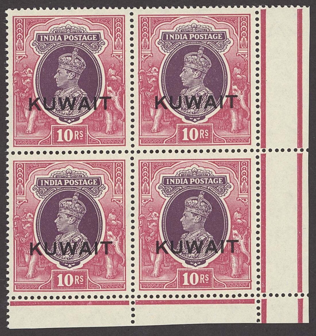 1939 10r. purple and claret, block of four from the lower right corner of a right pane, fresh unmounted mint; fine. S.G. 50, £380+