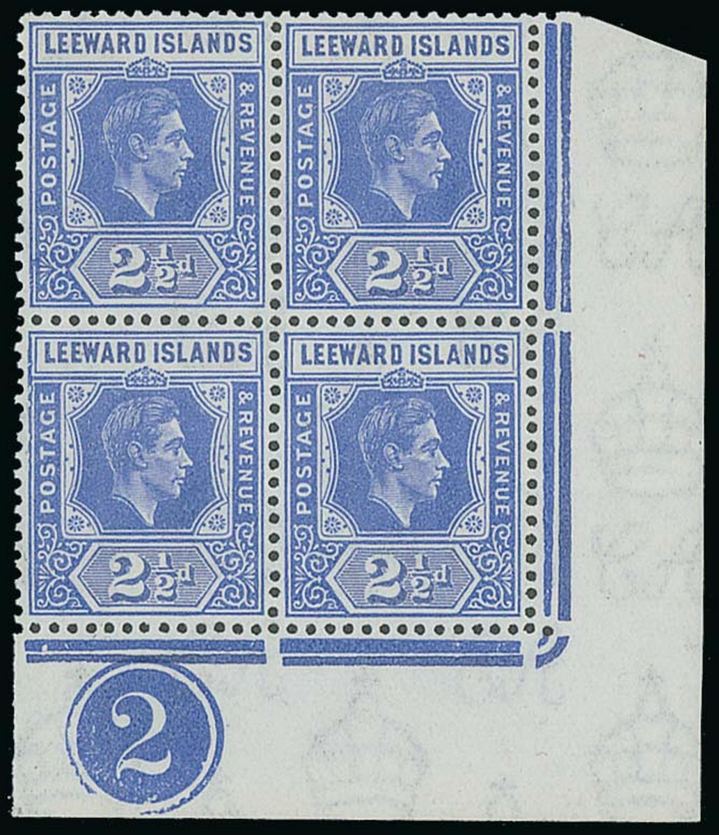 2½d. light bright blue lower right corner block of four with plate no. 2, one showing variety serrated edge, fine unmounted mint. S.G. 105a/ab, £450. Photo